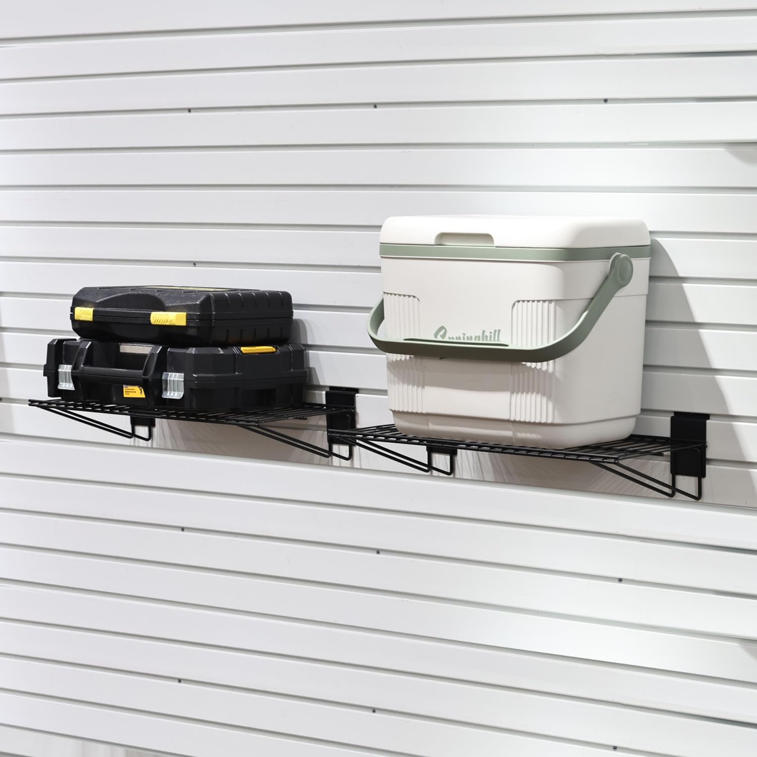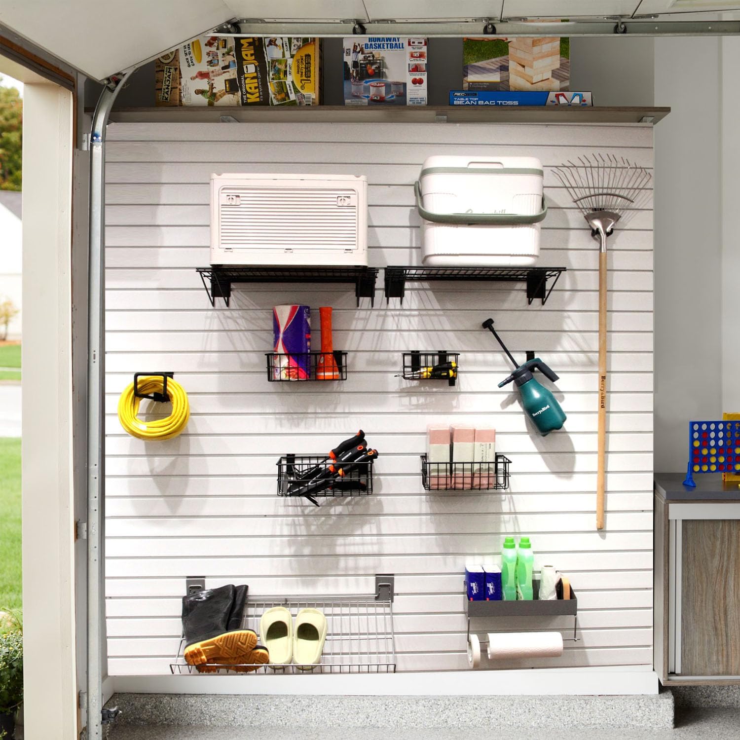 - Ample Storage Slatwall Shelves: Includes two black 24 x 11.4 x 5.5-inch wire shelves, providing plenty of space for daily use and easy replacement.