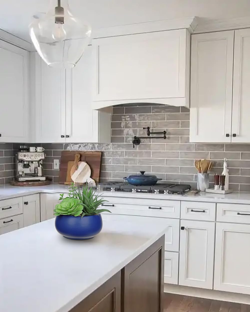 Fake Plants Artificial Succulents in Pots Faux Succulent Arrangement Potted Plant with Blue Ceramic Pot for Home Decor Modern Office Desk Bathroom Shelf Living Room Indoor & Outdoor Decoration