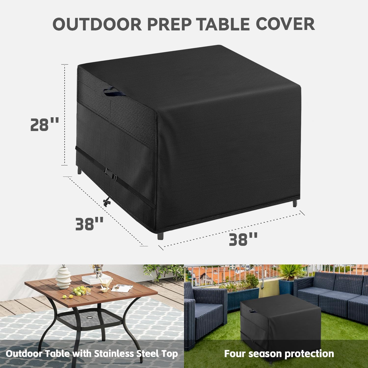 Outdoor Patio Square Table Cover 38 inch Black Heavy Duty Waterproof Cover for Square Slatted Tabletop