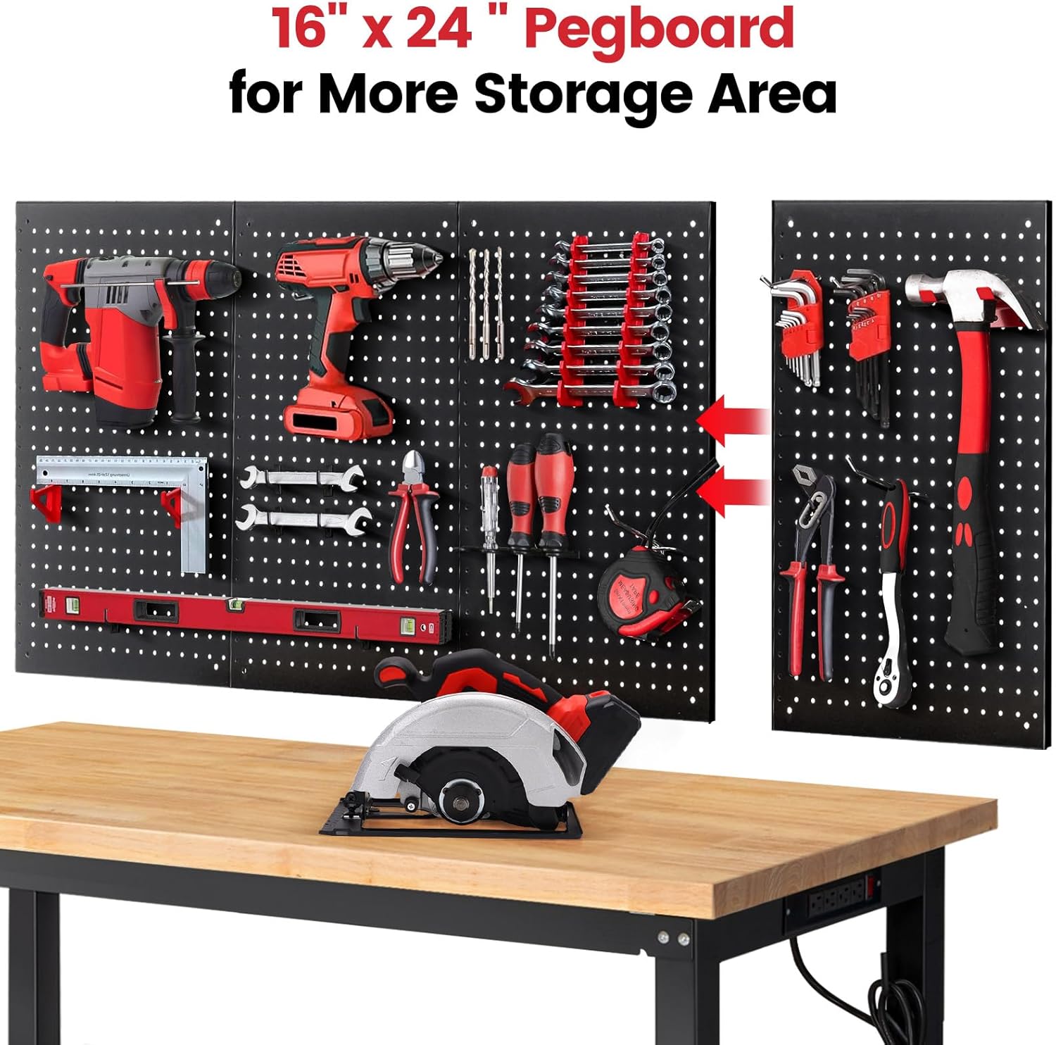 - Heavy Duty Rubberwood Tabletop: 1.2" solid rubberwood tabletop, with a weight capacity of 3000LBS, suits for heavy tools and materials. Comes with an safety varnish to protect the wood,workbench last longer.