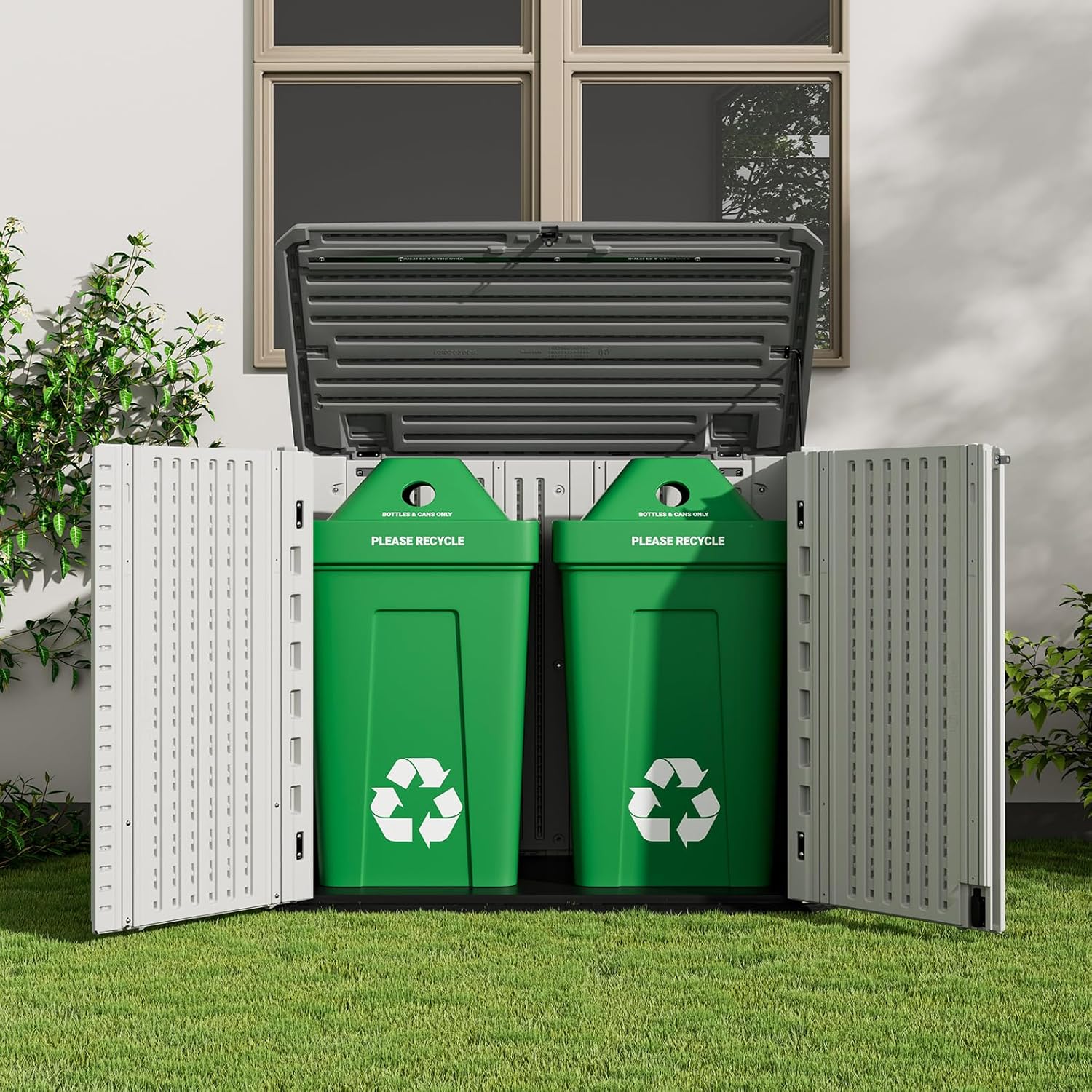 - Ensure Air Ventilation: 3 opening doors with lid support rod are desingned for easy lifting of items, padlock hasp allows doors of outdoor storage shed to lock