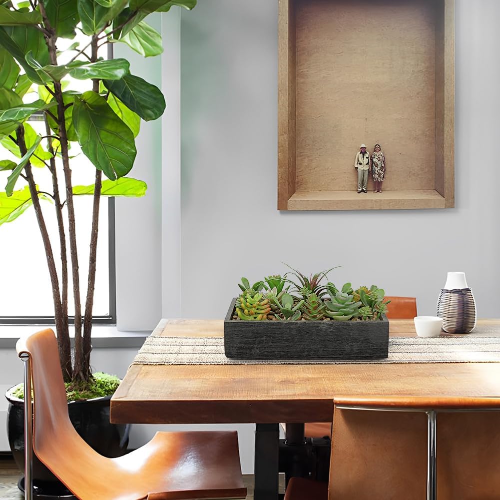 - Premium Material Design: Features high-quality polyethylene artificial succulents rooted in a sturdy rectangular wooden pot, topped with decorative pebbles for an authentic touch. The durable construction ensures stability while adding organic warmth to any space