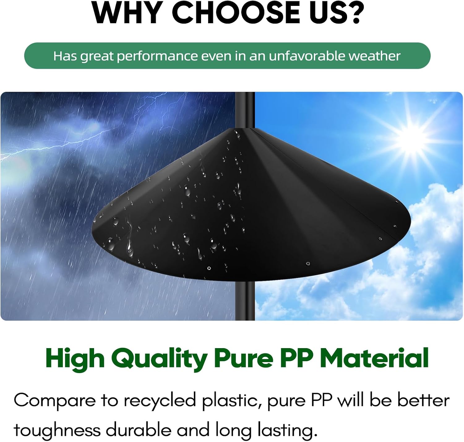 - Special Feature : Rain Proof, Squirrel Baffle with Metal Frame, UV Resistant, Weather Resistant
