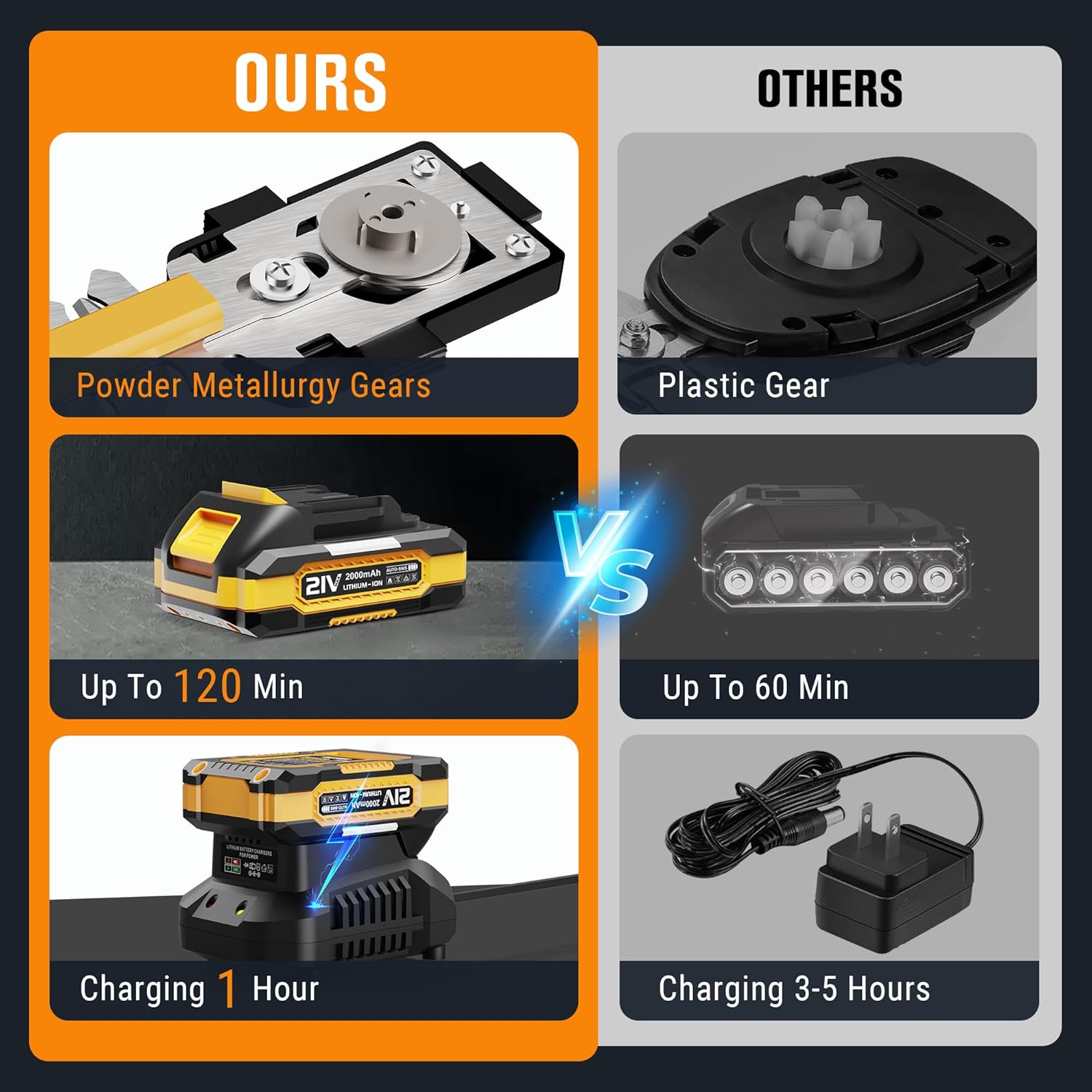 - β EWORK Electric hedge trimmer has upgraded copper wire motor and metal gears to effectively increase the service life by +200% (compared to plastic gears), and is equipped with an overload protection system, which will automatically cut off the power when the machine is blocked to protect the motor and ensure safe use