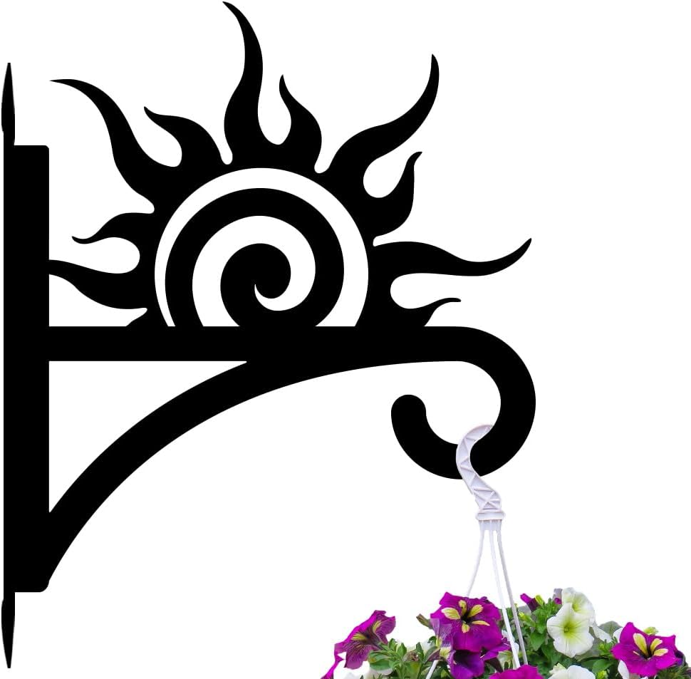 peacoblue Iron Plant Hangers Hooks Sunrise for Outdoor Indoor Hanging Plants Flower Fern Pots Lantern Bird Feeder Wind Chimes, 12"x15" Weather Resistant Metal Wall Holder for Porch Garden Farmhouse