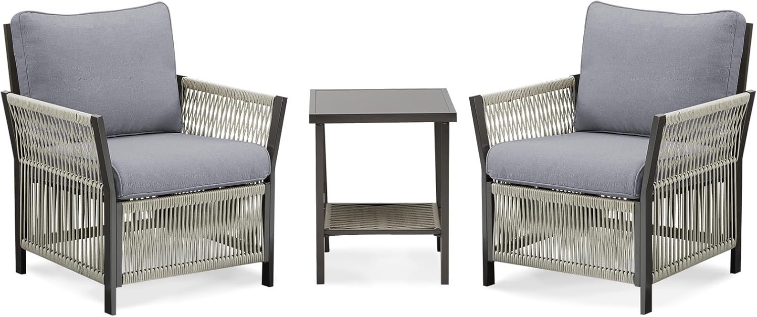 - 2-Tier Side Table with Tempered Glass: Enhance your outdoor space with this patio table set, featuring a 2-tier side table that provides additional storage. The tabletop is made of tempered glass with a brown tint, adding a touch of elegance and functionality to your outdoor furniture set. Perfect for keeping essentials close at hand while enjoying your outdoor oasis