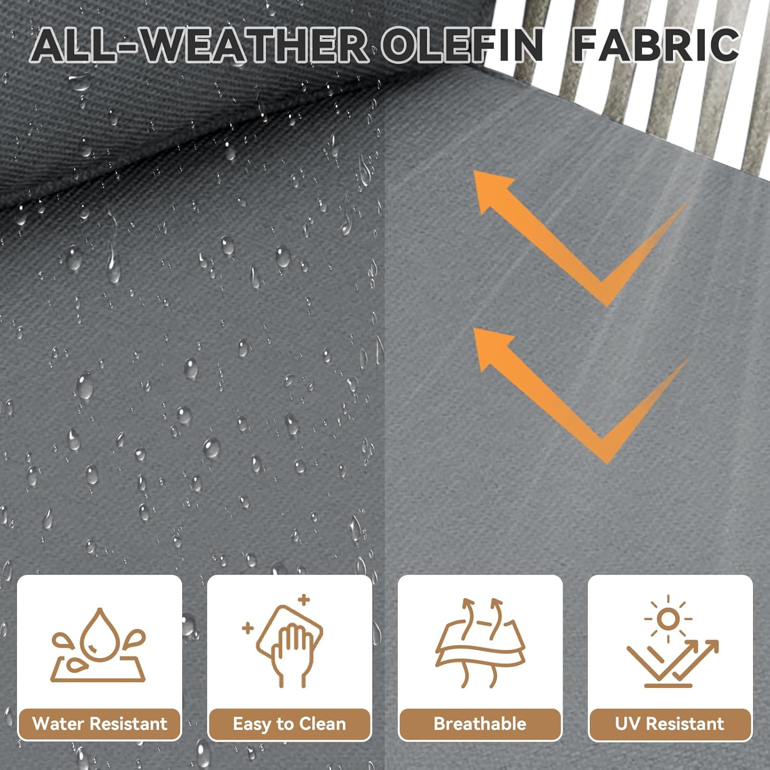 - Durable and Easy-to-Maintain Fabric: The cushions are crafted from Olefin fabric, offering 800 hours of UV protection and water resistance, making this metal patio furniture set ideal for all-weather use. The covers are removable and washable, featuring hidden zippers for easy cleaning. Enjoy a low-maintenance patio set that stays fresh and inviting throughout the seasons