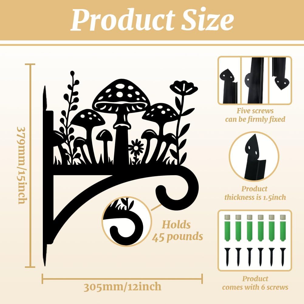 peacoblue Iron Plant Hangers Hook for Outdoor Indoor Hanging Plant Flower Fern Pot Lantern Bird Feeder,12"x15" Weather Resistant Metal Wall Holder for Porch Garden Farmhouse(Mushroom and Wildflower)