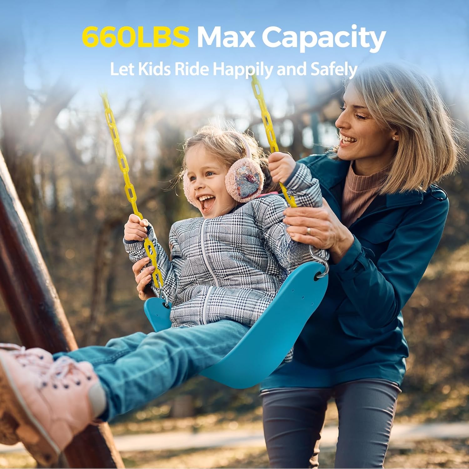 - 【Thickened Soft & Safe Swing Seat】Made of EVA plastic material, our swing seat is soft & strong to let you feel comfortable. It extrudes without deformation and has chemical resistance, corrosion resistance & crack resistance.The thickened swing board is 26 x5.5 inch of U shape. Sitting on it you will wobble more safely and have more fun. The swing set owns safe non-slip designs & lovely color that won't hurt your eyes. It is easy to clean, suitable for girls & boys in outside activities.