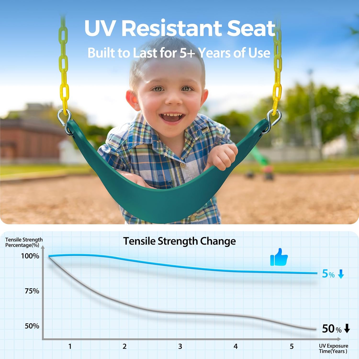 - 【Thickened Soft & Safe Swing Seat】Made of EVA plastic material, our swing seat is soft & strong to let you feel comfortable. It extrudes without deformation and has chemical resistance, corrosion resistance & crack resistance.The thickened swing board is 26 x5.5 inch of U shape. Sitting on it you will wobble more safely and have more fun. The swing set owns safe non-slip designs & lovely color that won't hurt your eyes. It is easy to clean, suitable for girls & boys in outside activities.