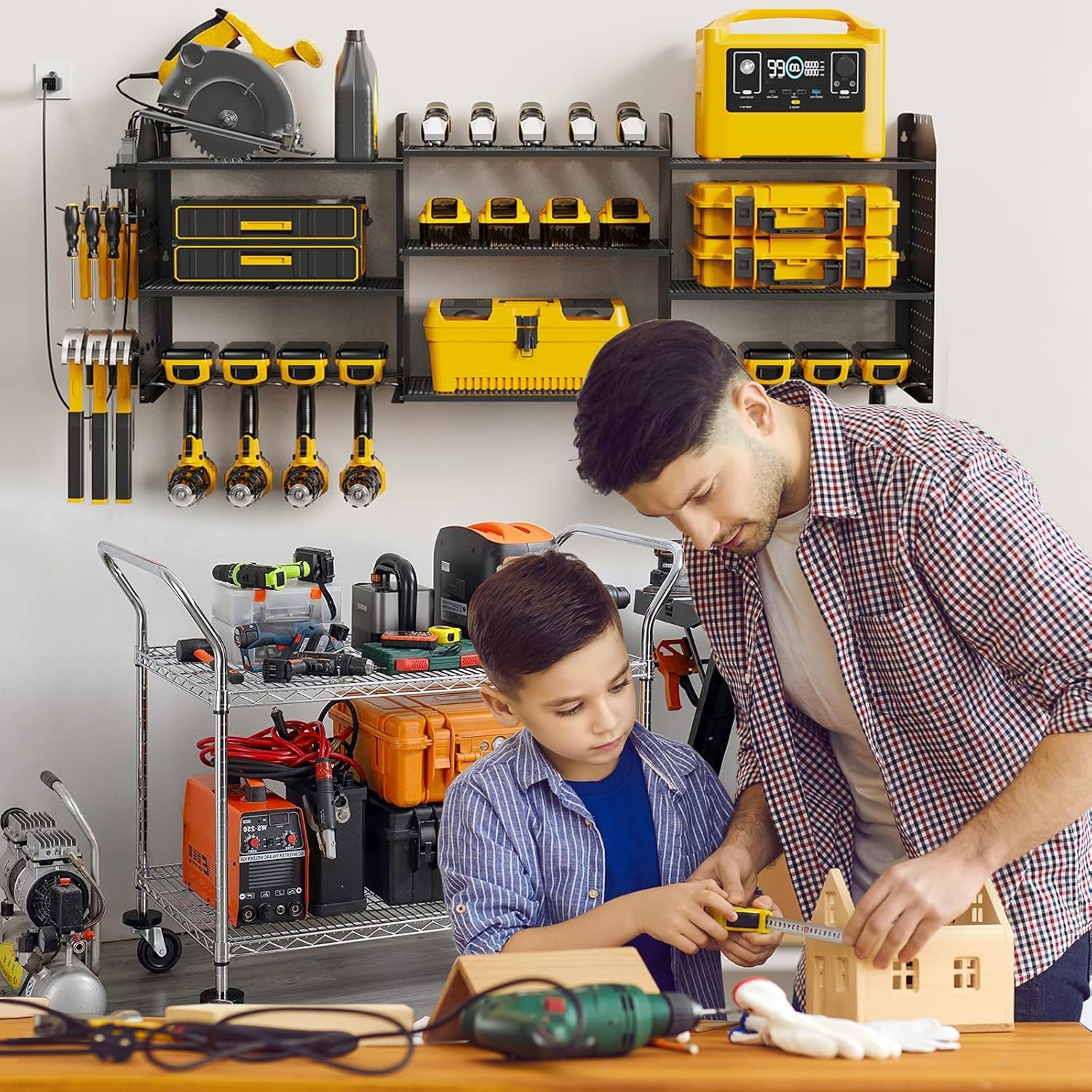 - Power Tool Organizer with Charging Station: Position outlets on either side to keep your tools charged. The American-standard power strip (Output: 125V/12A/1500W) provides device protection, frees up top-shelf space, and clearly displays power status. Includes a 6.56 ft power cord for easy setup