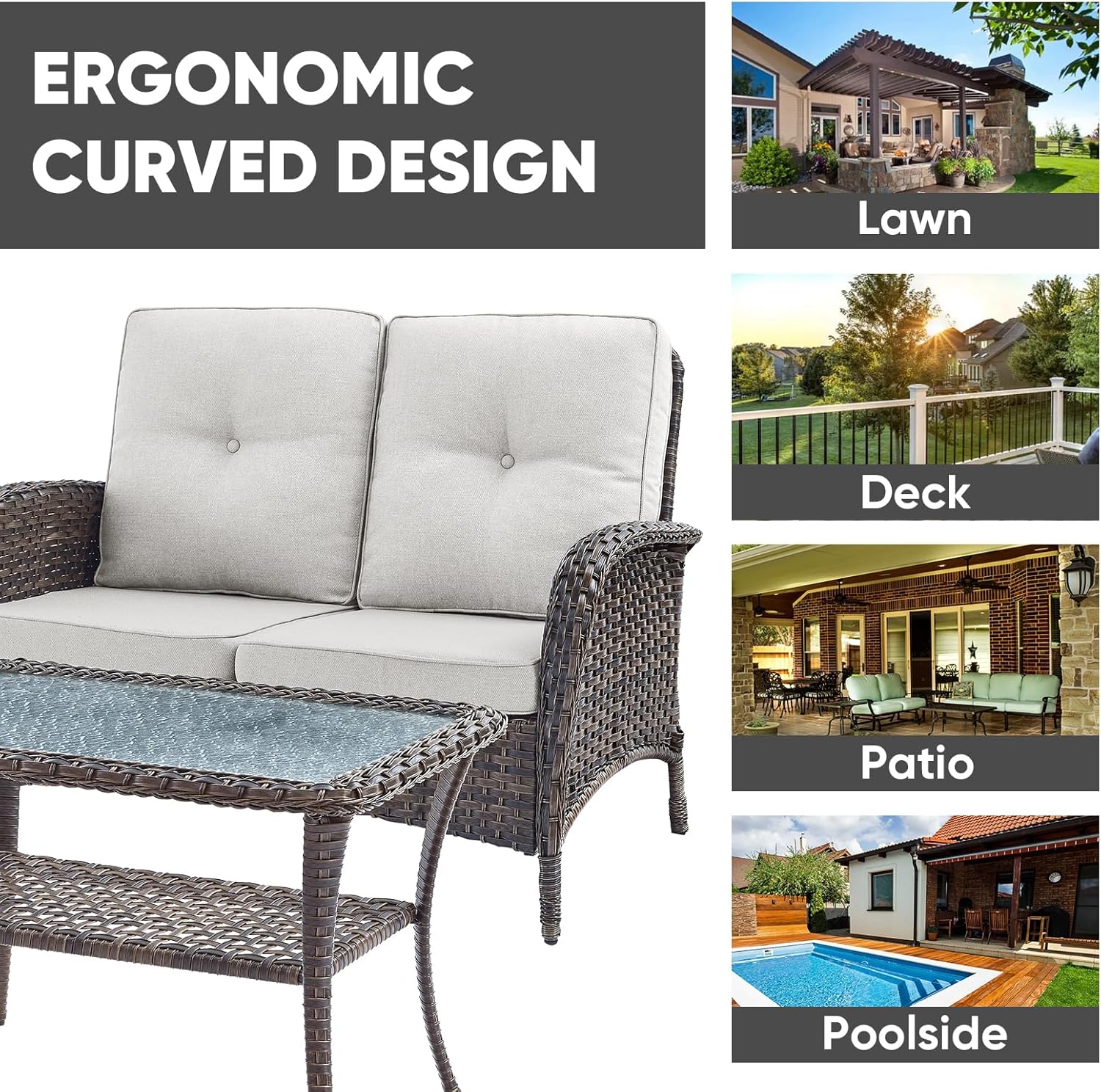 - ADAPTABLE: According to your space, you can pair the 2-seat sofa with the patio chairs,ottomans,or coffee table,The combined patio furniture set is suitable for the balcony, deck, backyard, porch and poolside with its various styles.