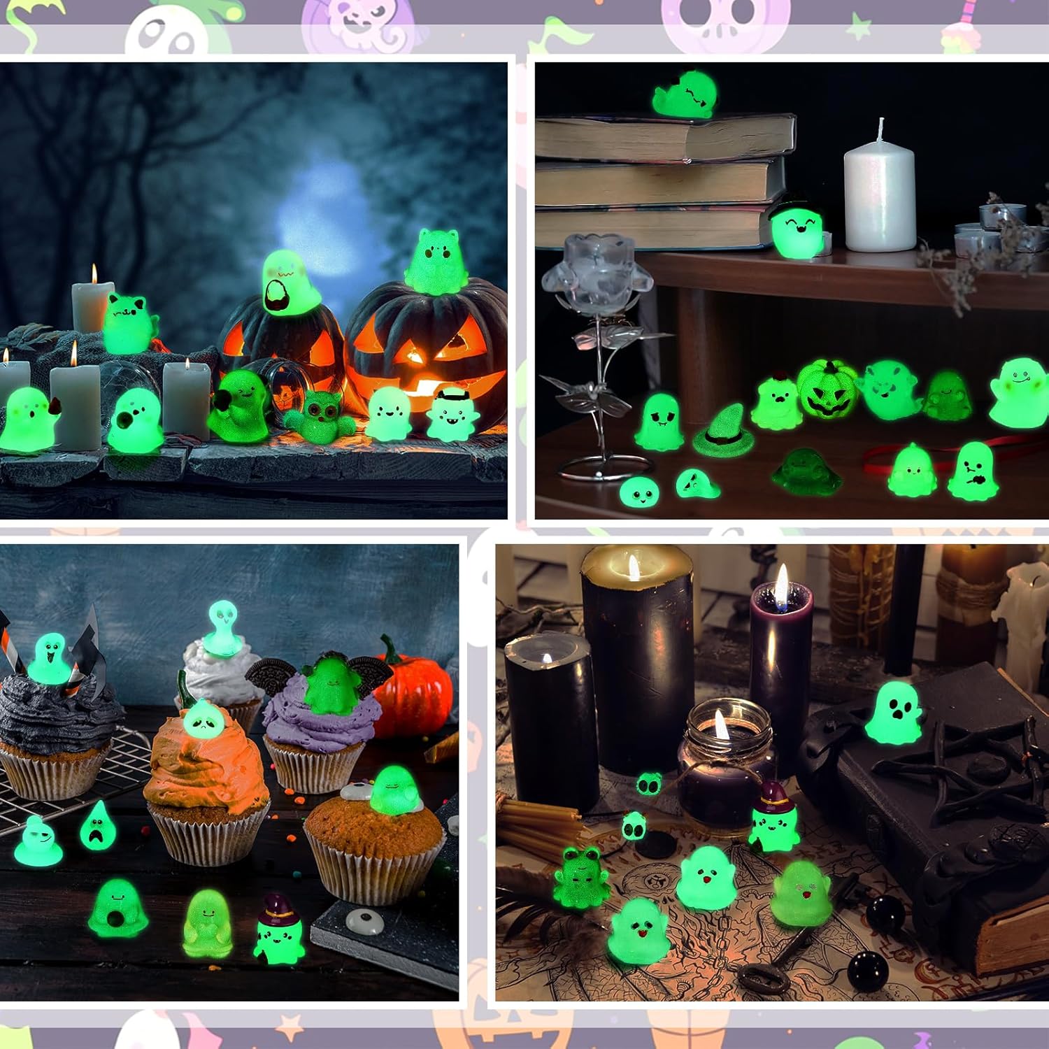 - Halloween Glow in Dark Figures Set: transform your space with 58 diverse glow in dark Halloween figures, Halloween miniatures illuminate in the dark; Craft a full fledged Halloween ambiance effortlessly