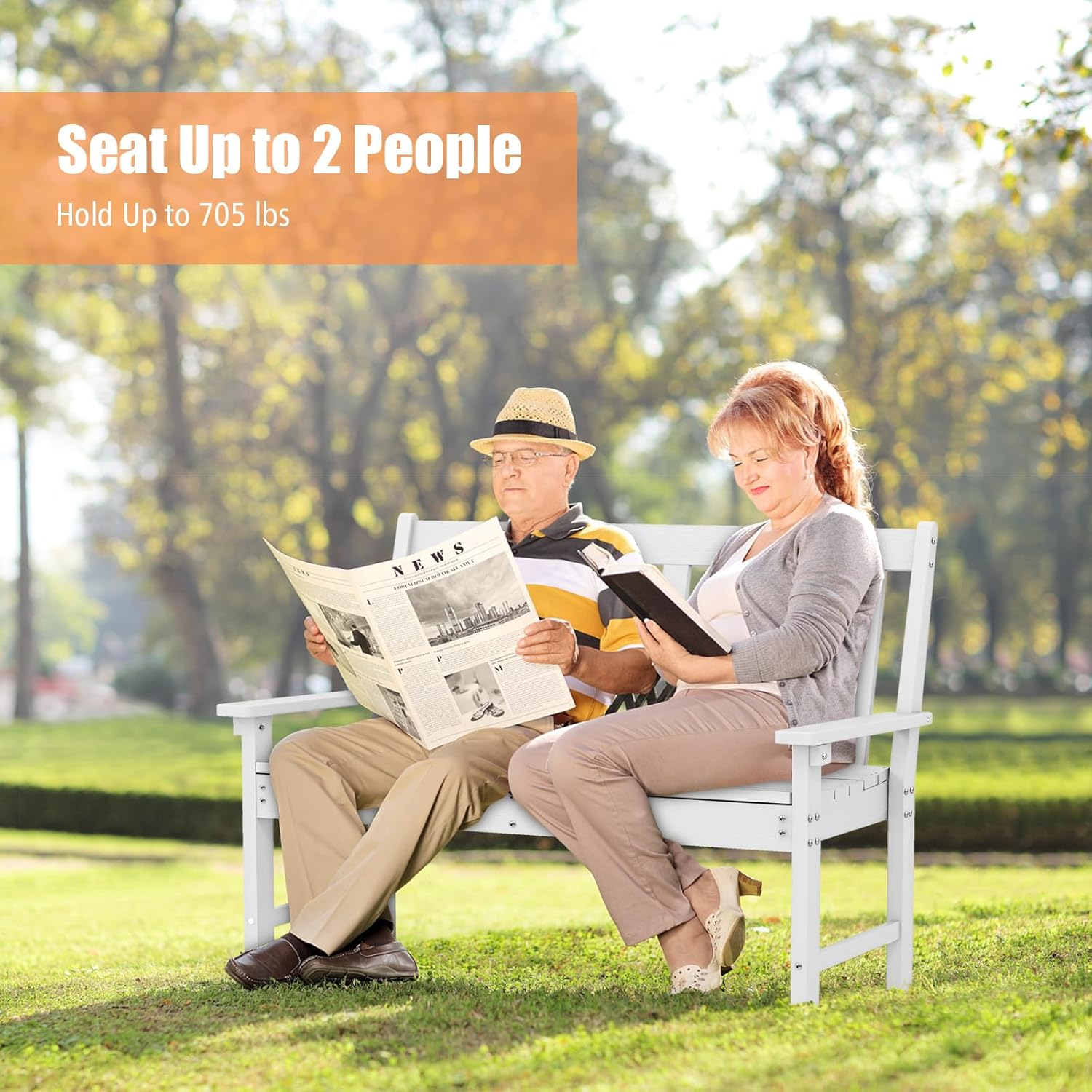 Giantex Outdoor Bench, 52-Inch Outside Bench All-Weather HDPE Park Bench with Backrest and Armrests, 705 lbs Weight Capacity, 2-Person Slatted Patio Bench for Porch, Yard, Lawn, Garden Bench (White)
