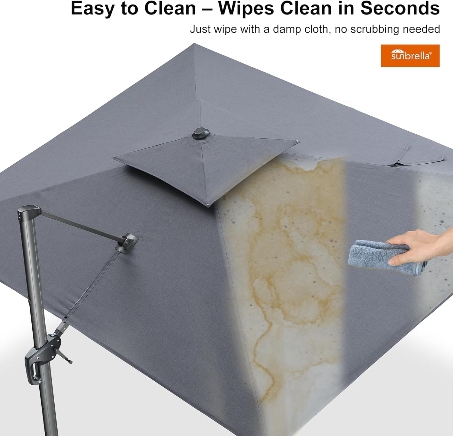 - Superior UV Protection: Featuring industry-leading fabric, this cantilever umbrella blocks over 98% of UV rays to effectively reduce skin cancer risks. 5 years of fade resistance, water and stain resistance.