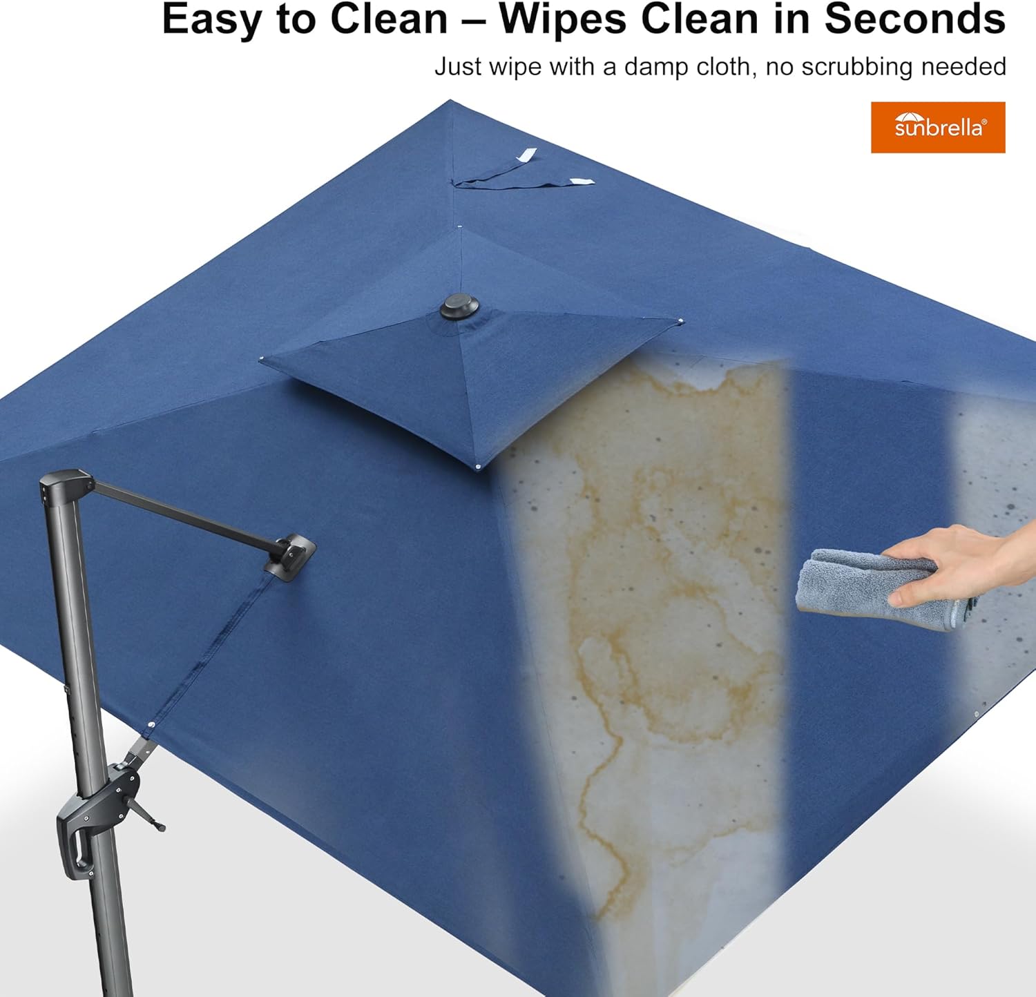 - Superior UV Protection: Featuring industry-leading fabric, this cantilever umbrella blocks over 98% of UV rays to effectively reduce skin cancer risks. 5 years of fade resistance, water and stain resistance.
