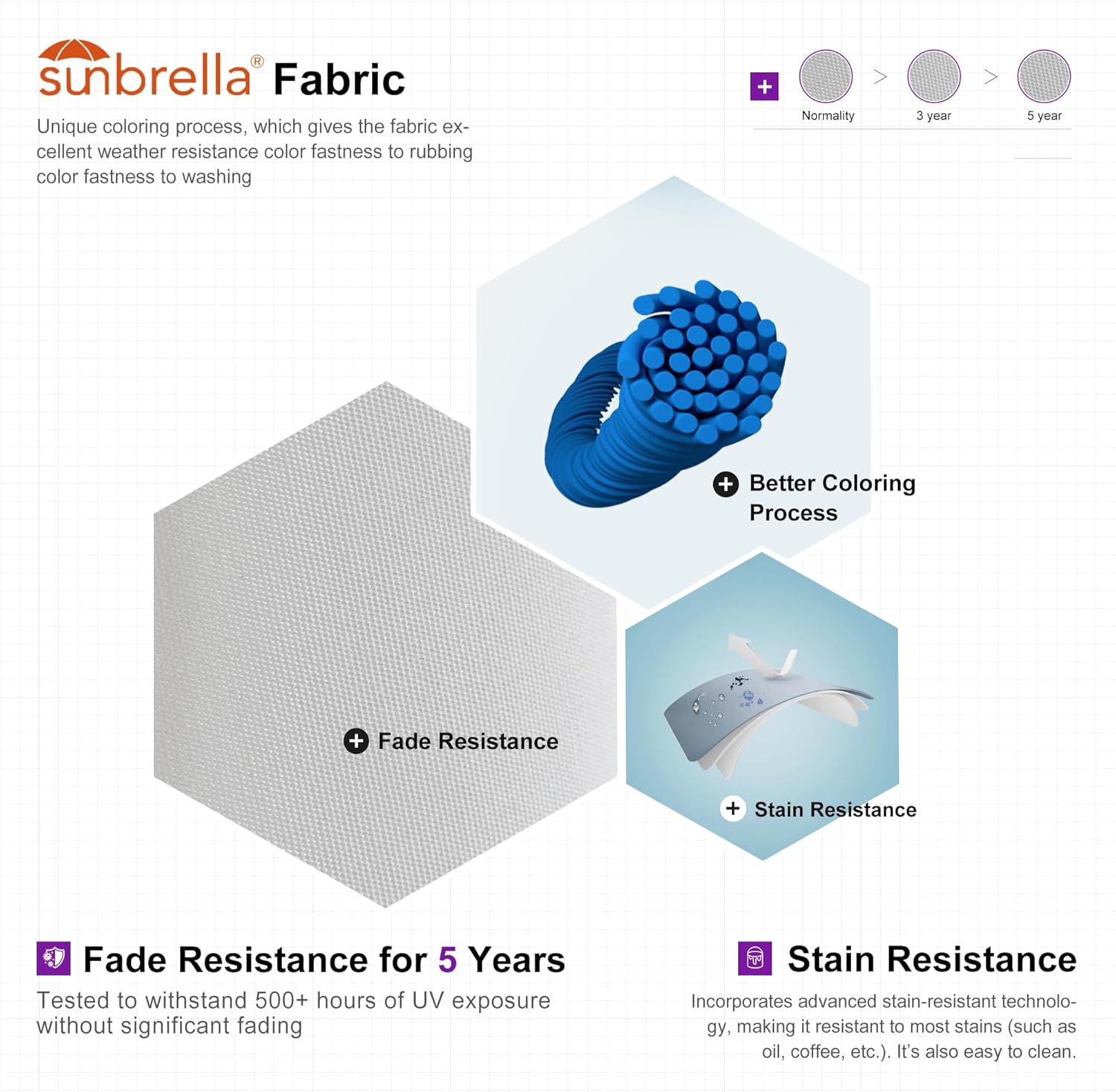 - Superior UV Protection: Featuring industry-leading fabric, this cantilever umbrella blocks over 98% of UV rays to effectively reduce skin cancer risks. 5 years of fade resistance, water and stain resistance.