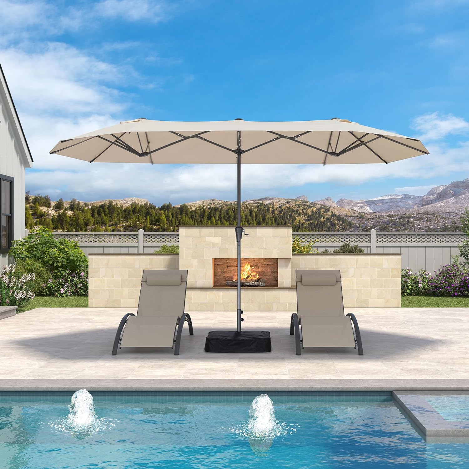 - Double-Sided Umbrella: This market patio umbrella provides up to 13 feet of coverage, offering shade for at least an 6-piece dining set. It is ideal for use in spacious patios, gardens, or by the poolside