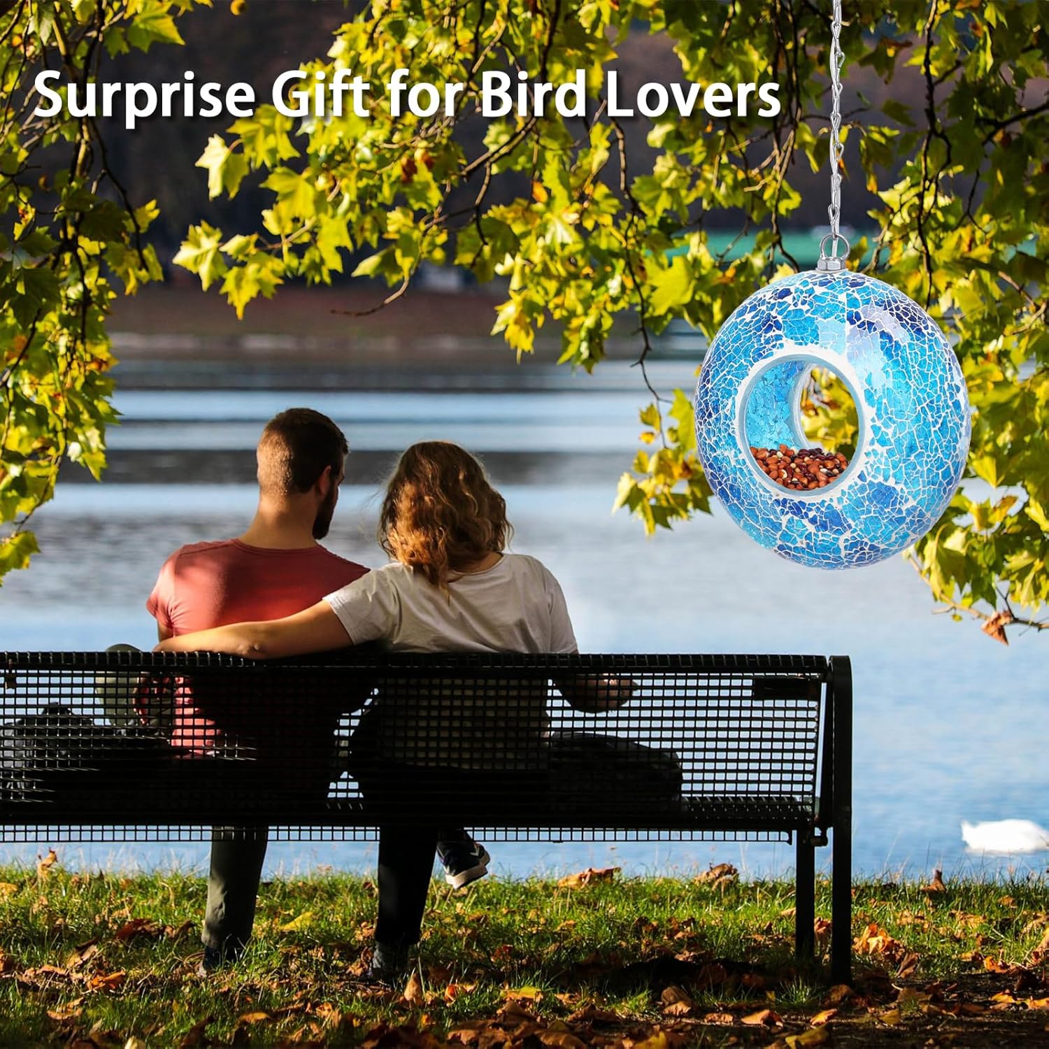 - Hanging Bird Feeder: Mosaic hang bird feeders for outdoors is made of strong mortar and glass. Birds can eat from the rim or hop inside during bad weather