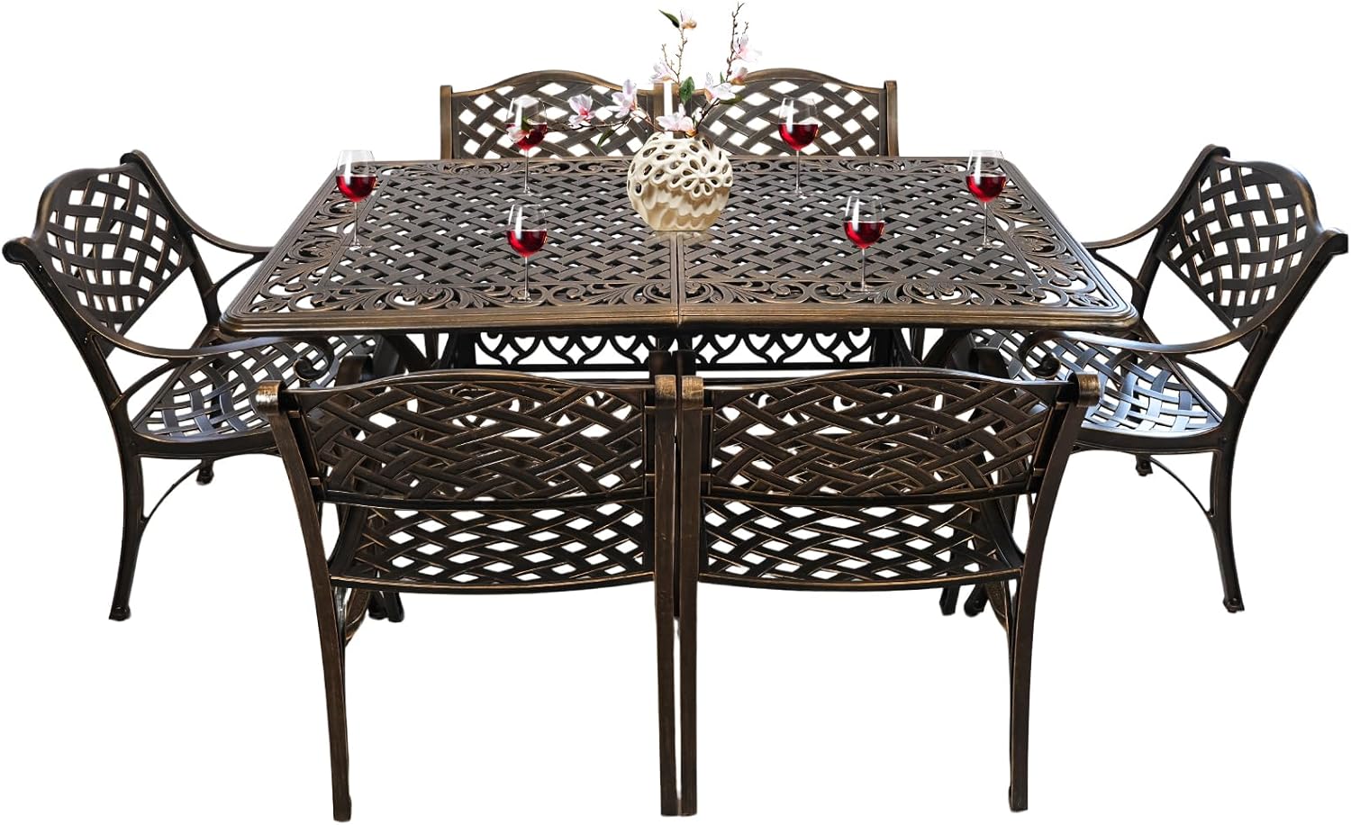 7 Piece Outdoor Dining Set, Cast Aluminum Patio Dining Set for 6 Person, Patio Furniture Set with 59" Rectangle Patio Table(2.56" Umbrella Hole) and 6 Chairs