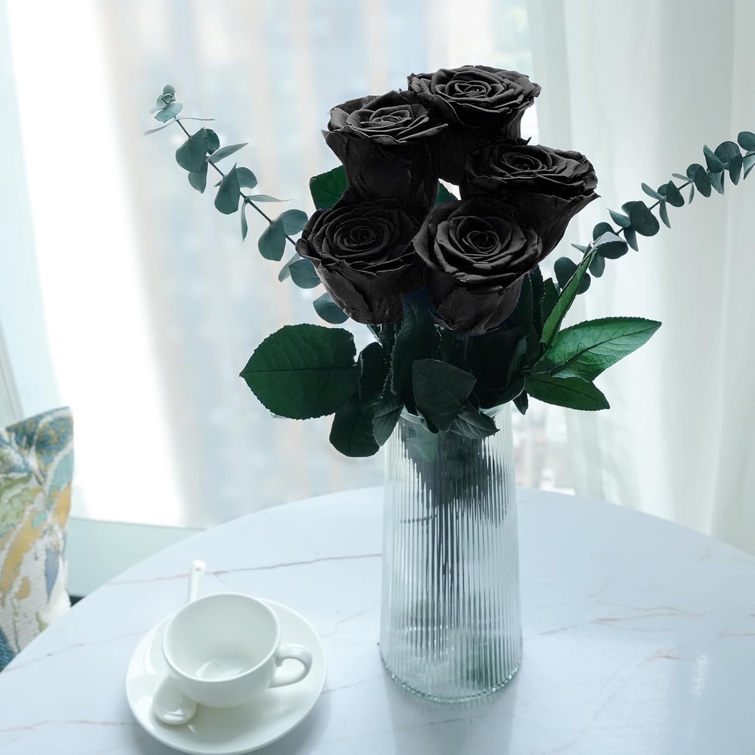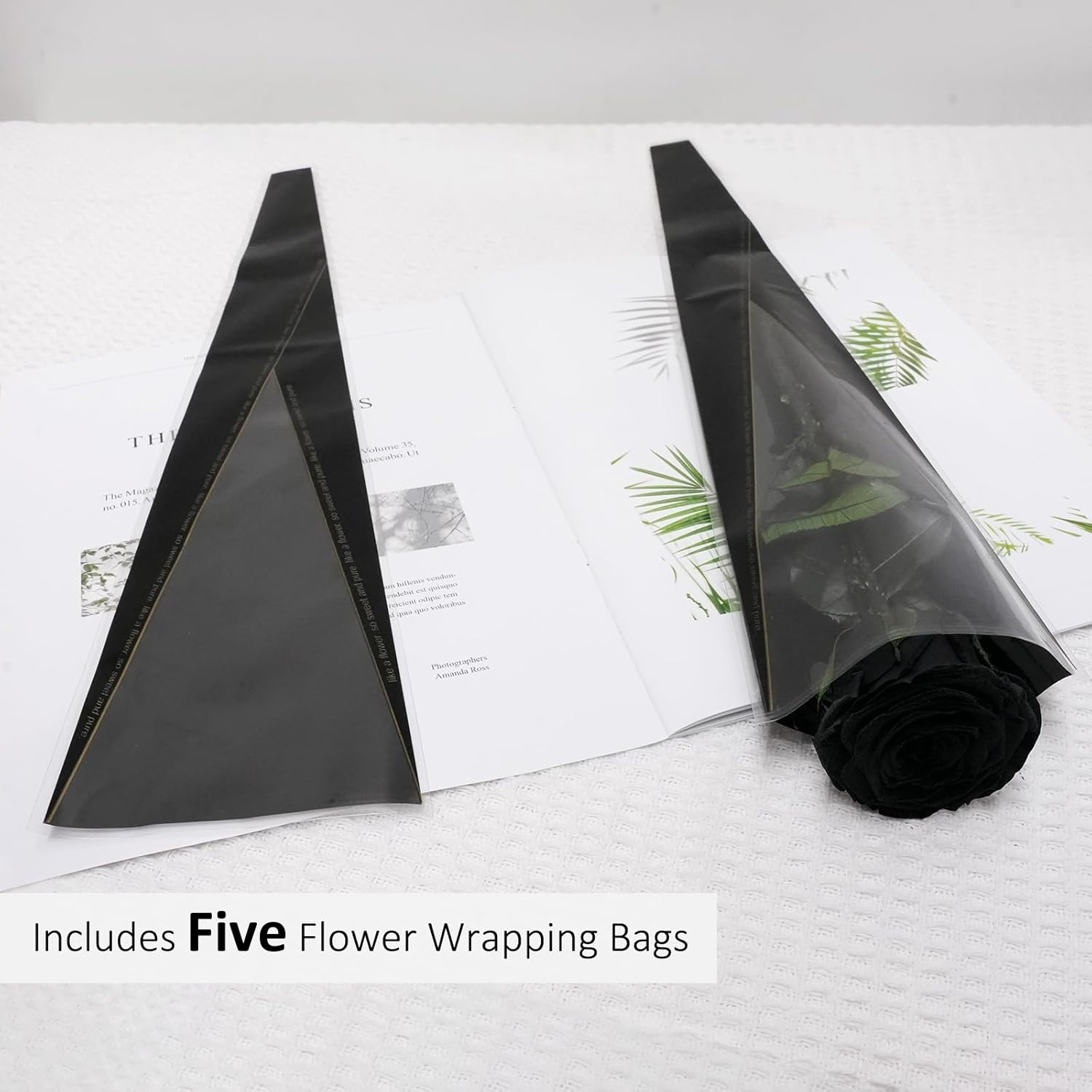 - Eternal Real Rose with Stems: Package includes- 5 x Preserved flowers roses, 5 x Flower wrapping bags, 1 x Greetings Cards๏ผ1 x Rose gift box. The preserved flowers rose with long stems are 30 to 32 cm(11.81 to 12.6 in) length, the roses have a diameter of 5 to 6 cm(1.97 to 2.36 in) and some of their thorns have been removed to avoid injury. Preserved flowers roses for delivery prime