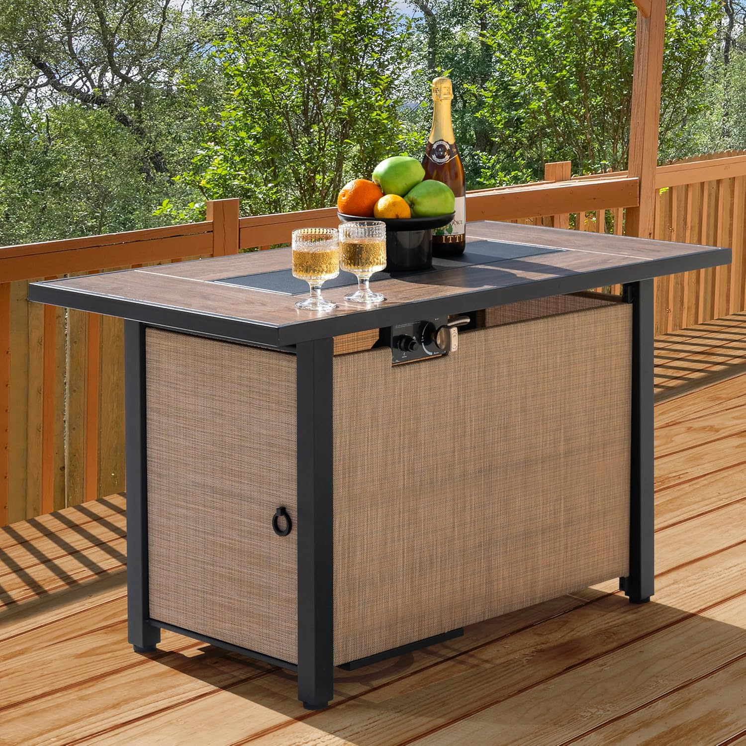 Nuu Garden 43" Propane Fire Pit Table, CSA-Listed Outdoor 50,000 BTU Gas with Lid and Glass Beads, 2-in-1 Rectangular for Outside Backyard Patio, Light Brown