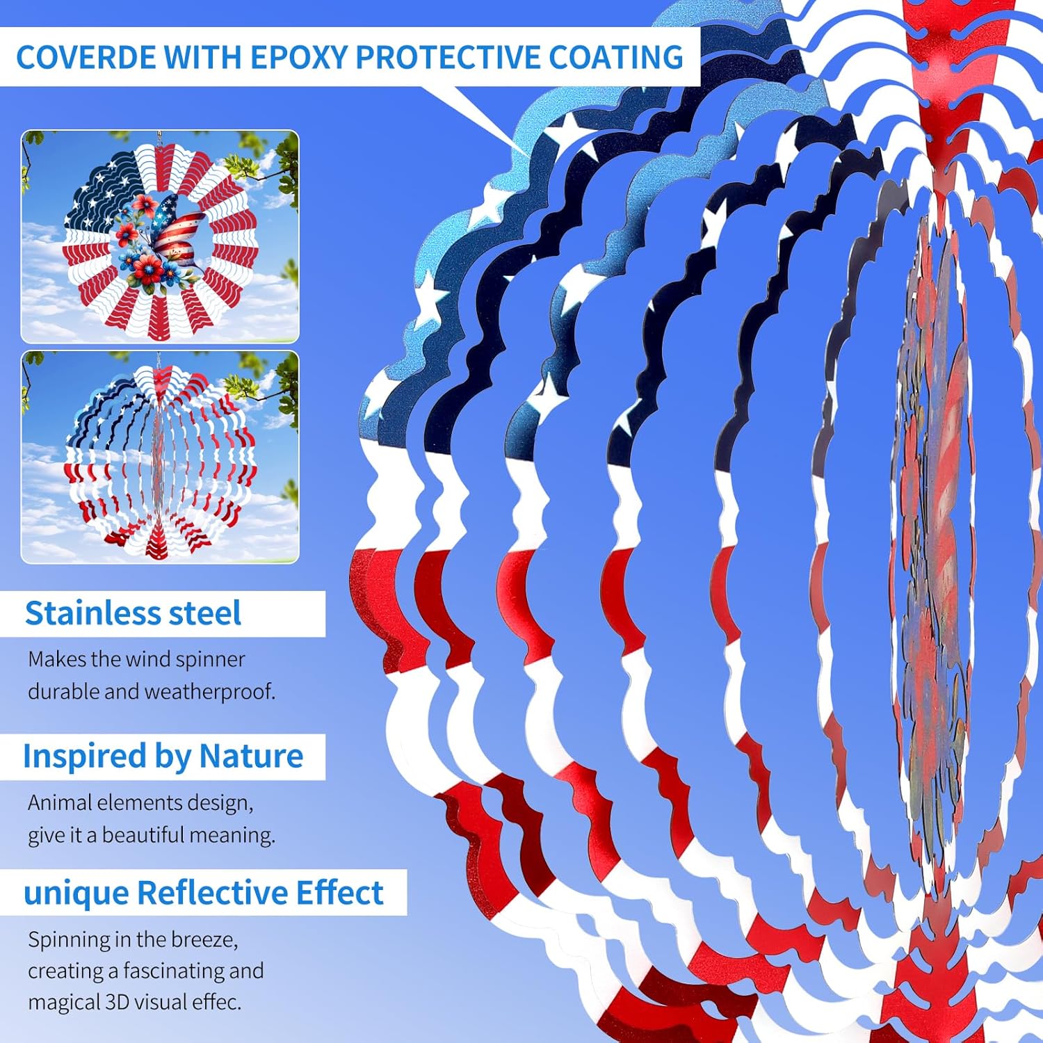 - 12inch 3D Butterfly Wind Spinner Outdoor Decor - Cawalap Butterfly Metal Wind Spinner is made from Sturdy stainless steel material by laser-cutting technology to form vivid shape, makes it flexible and strong, is individually hand painted by epoxy protective coating with colorful sparkle powder inside to highly resist weather and rust. a frosted paint finish, giving off a sparkling when it spin. The unique design combined meaningful animal pattern and a 3D streamer effect.
