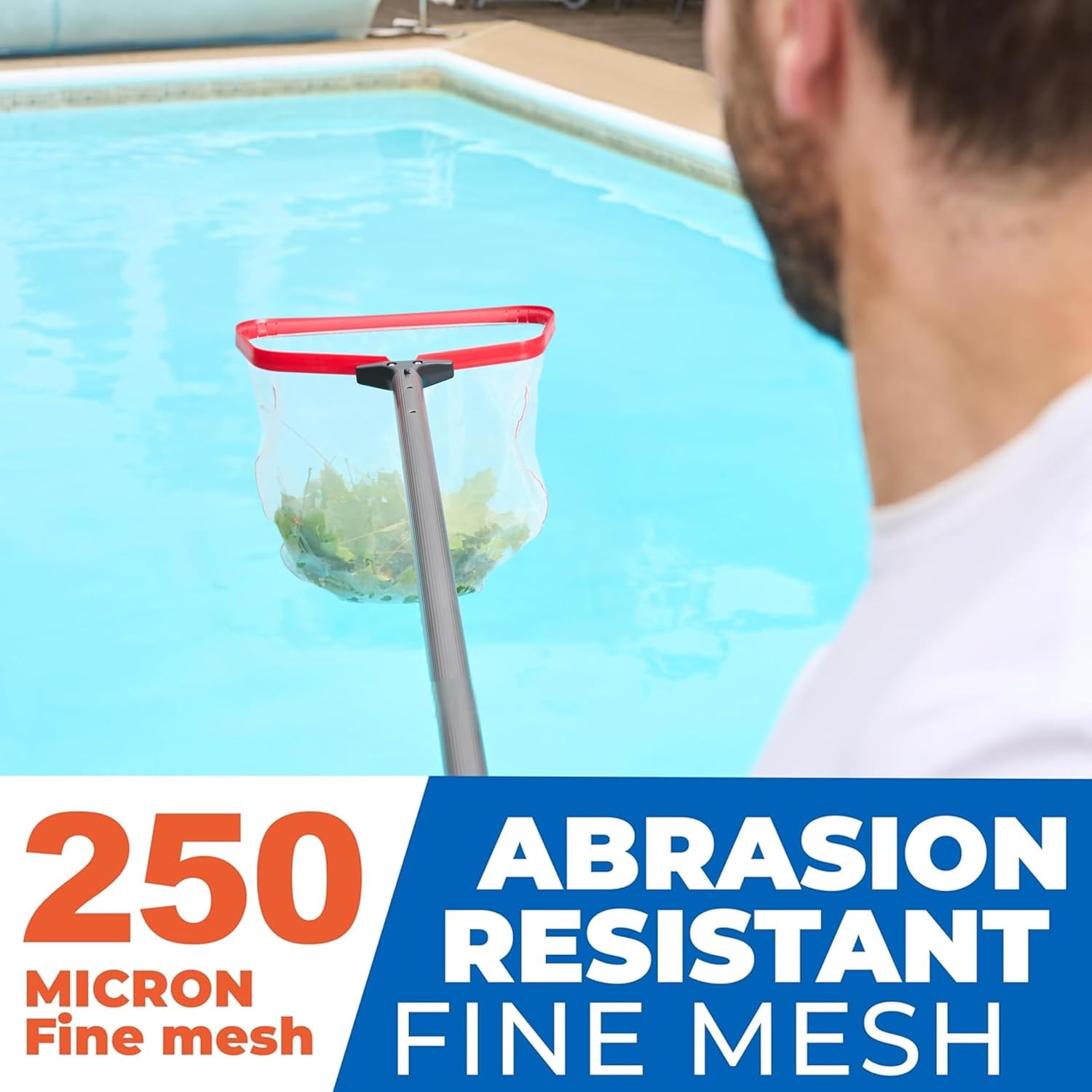- MAXIMUM CLEANING POWER β This pool net skimmer features a fine mesh bag that captures even the smallest debris, including silt and sand. The deep pool leaf net design ensures effortless cleaning, making it ideal for cleaning leaves, bugs, and pollen for crystal-clear water.
