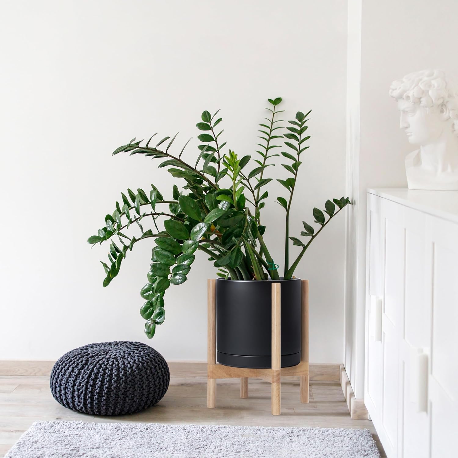 - A Complete Set: Mid-century ceramic planter, combined with a natural color, sculptural, solid wood stand that match perfectly together and looks great in anywhere.