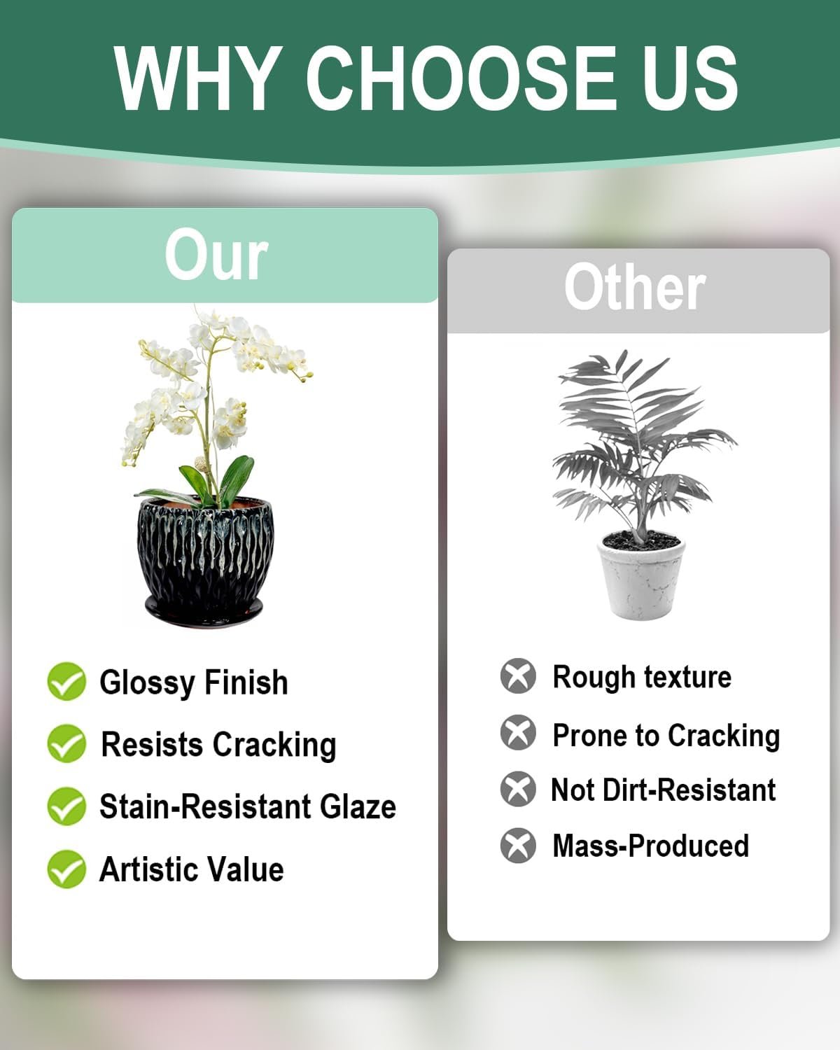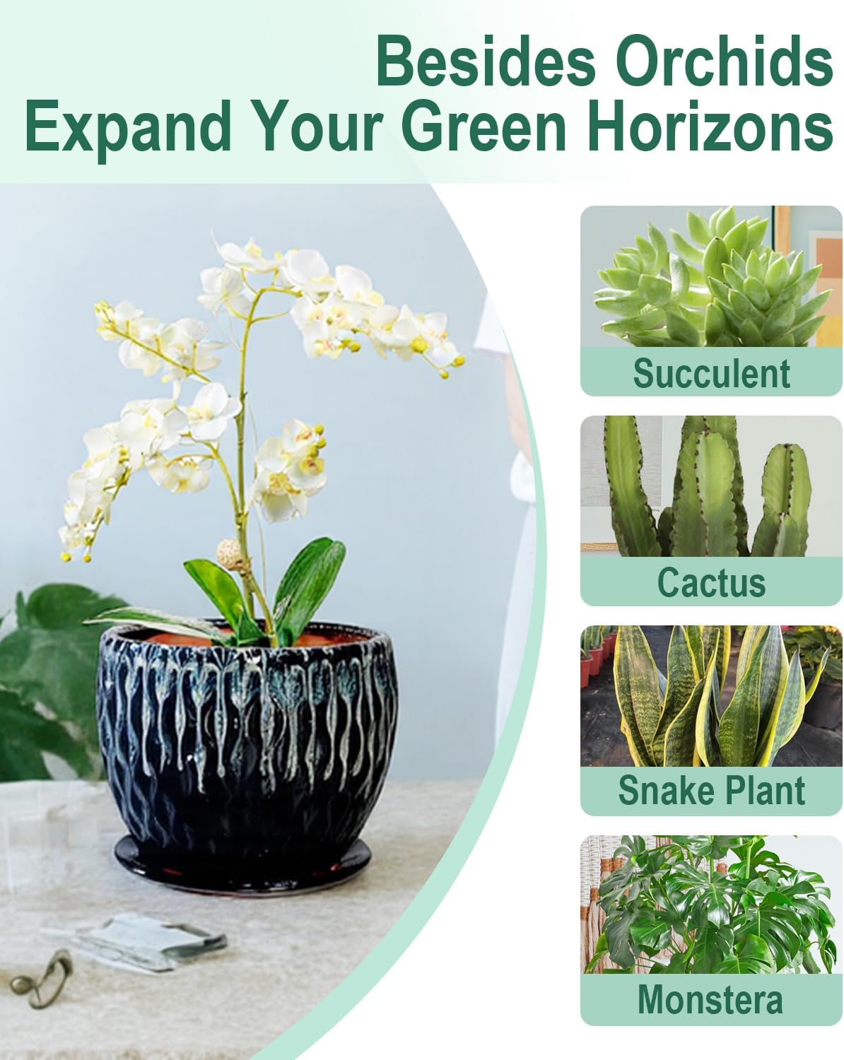 - 【Drainage Hole and Saucer】This 7.5 inch ceramic orchid pot includes a built-in drainage hole and fixed saucer. It helps manage excess water and supports better growing conditions for orchids and indoor plants