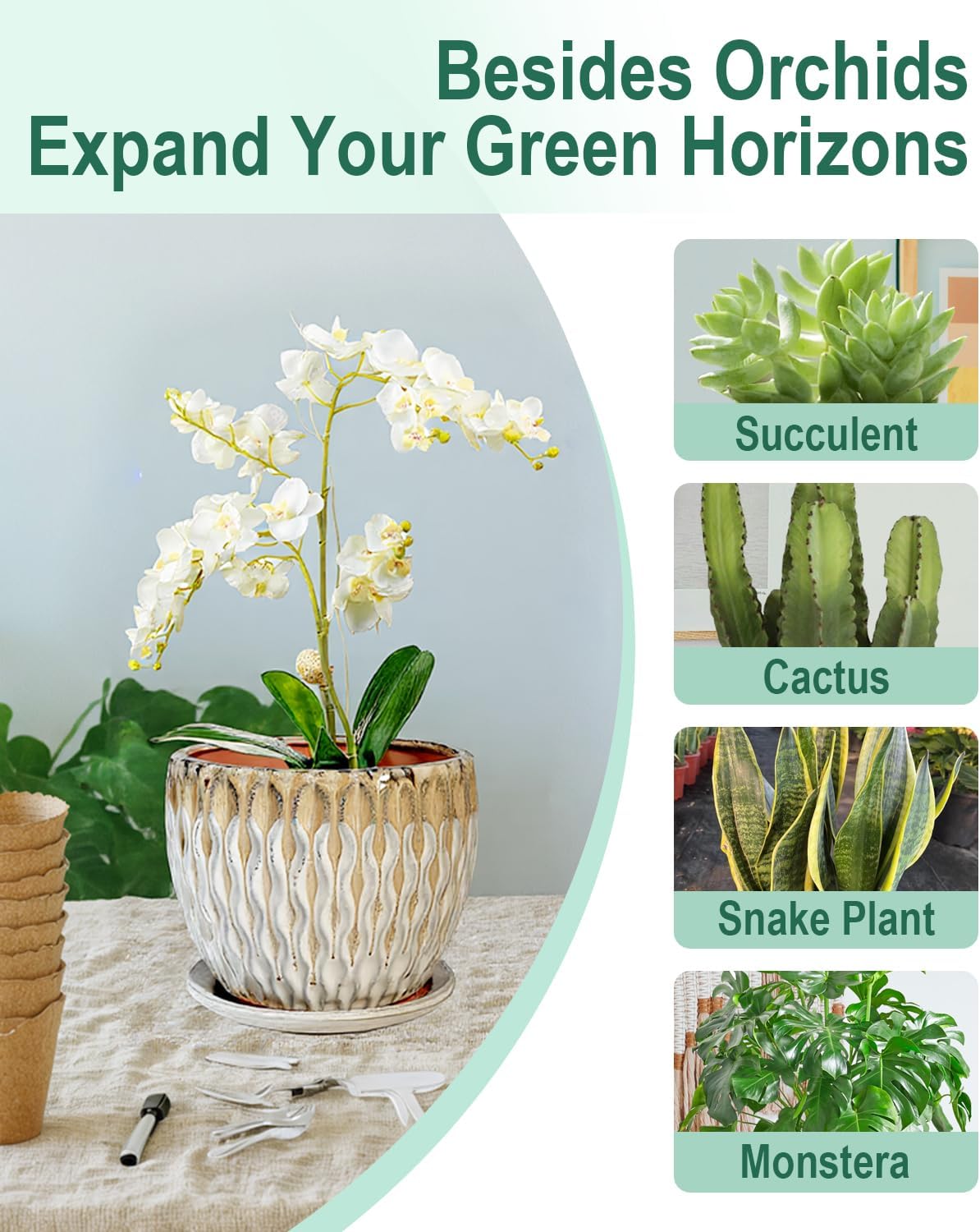 - 【Drainage Hole and Saucer】This 7.5 inch ceramic orchid pot includes a built-in drainage hole and fixed saucer. It helps manage excess water and supports better growing conditions for orchids and indoor plants