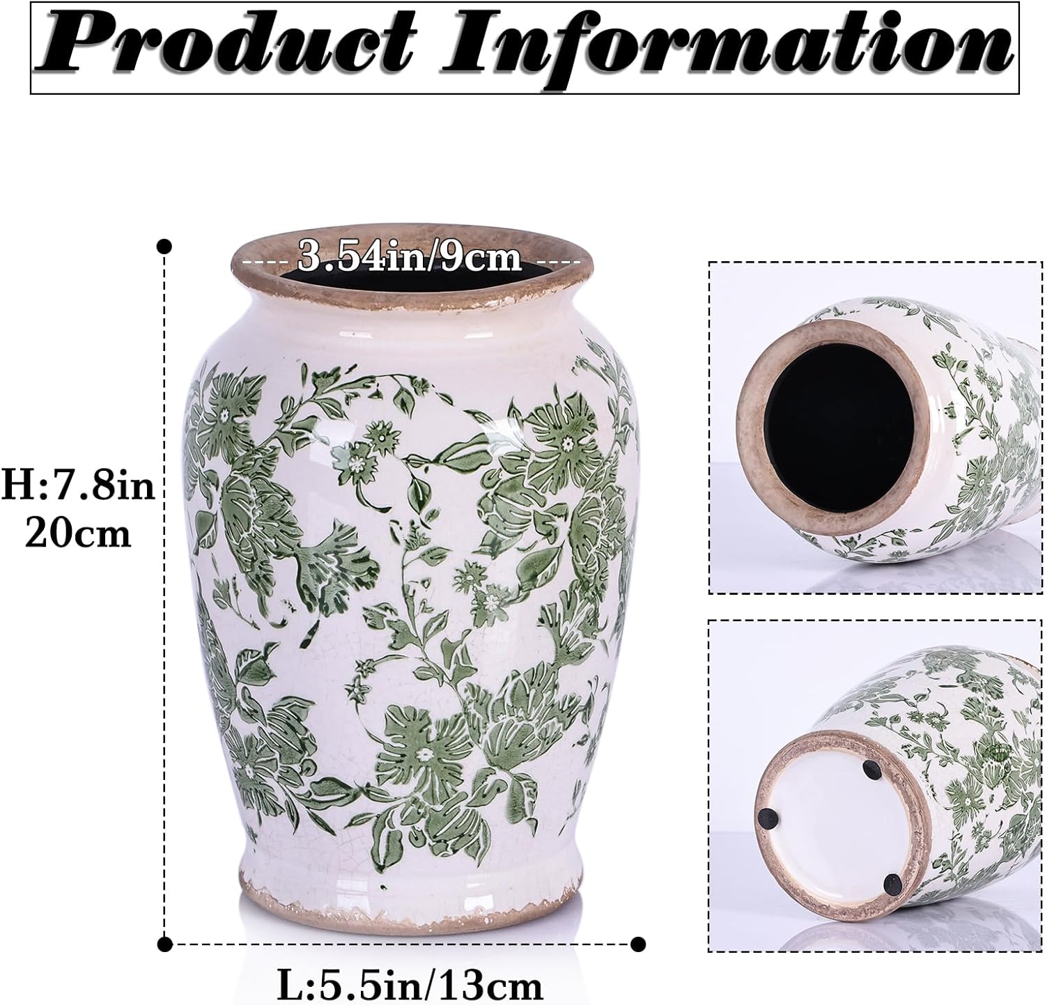- Rustic flower vase: This porcelain vases measures approximately: 8.3 inches high, 5.5 inches in diameter/21*14 cm, can be used to display fresh or artificial flowers on shelves, mantels, tables or other surfaces, adding charm to living rooms, dining rooms, bedrooms, etc.