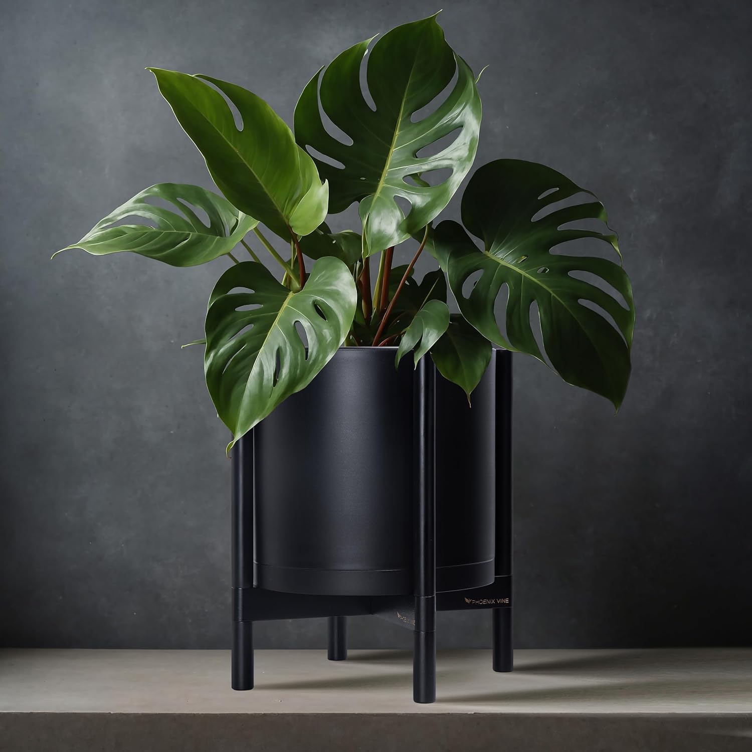 - A Complete Set: Minimalist plastic planter, combined with a sculptural, solid wood stand that match perfectly together and looks great in any home.