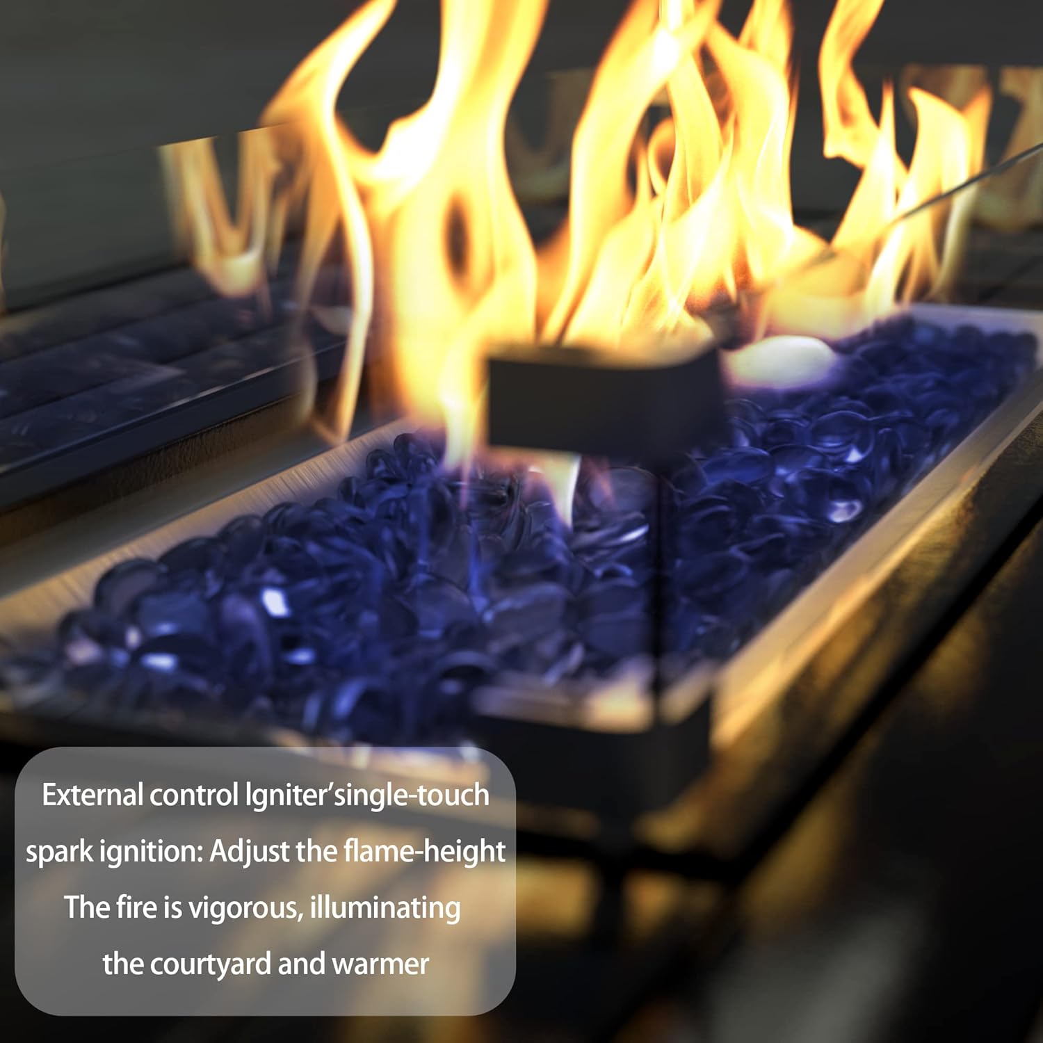 - Glass Windshield: Ignite a warm, inviting flame over the sparkling glass rocks and watch it burn all night, as an included glass wind guard adds elegant appeal while keeping the fire going even during a breeze. The Outdoor Rattan Fire Pits Table provides heat to whoever is around your fire table, we wonβt leave you out in the cold