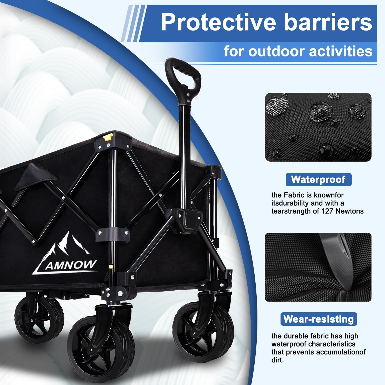 - AFTER SALES - EASY TO ASSEMBLE - COLLAPSIBLE WAGON: The wagon will come with an instruction manual when you receive it, so even a child can easily assemble it easier than assembling blocks, and it can be put into use at any time. Whether you're going camping, surprise shopping, or tidying up the garden, the AMNOW wagon is your faithful companion. We also offer a one-year warranty, so if you have any problems during use, please contact us promptly
