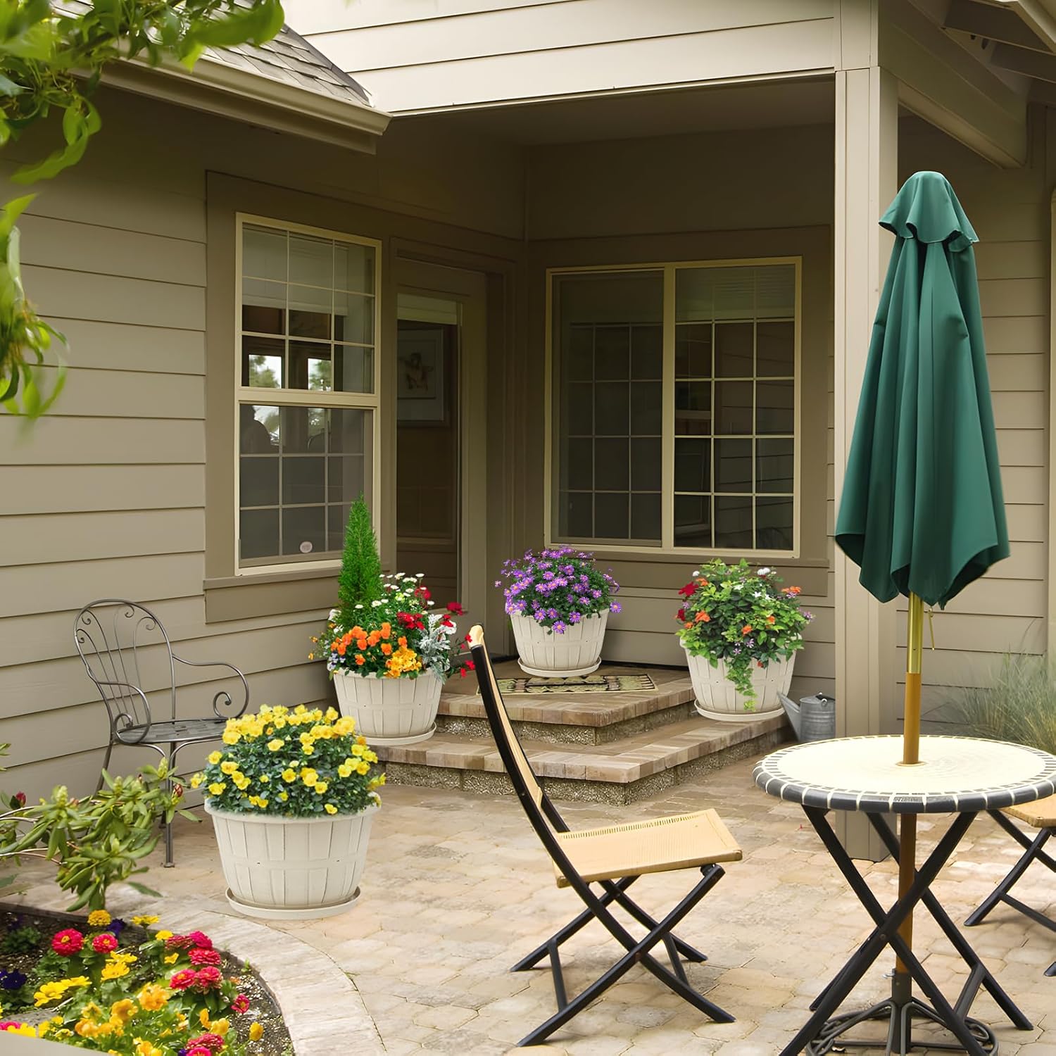 - 【Unique Design】The whiskey barrel planters stands out with its simple texture and classical design mimicking a wine barrel. This distinctive design of the plant pots with drainage holes not only sets your planter apart but also adds a touch of sophistication to indoor or outdoor spaces.