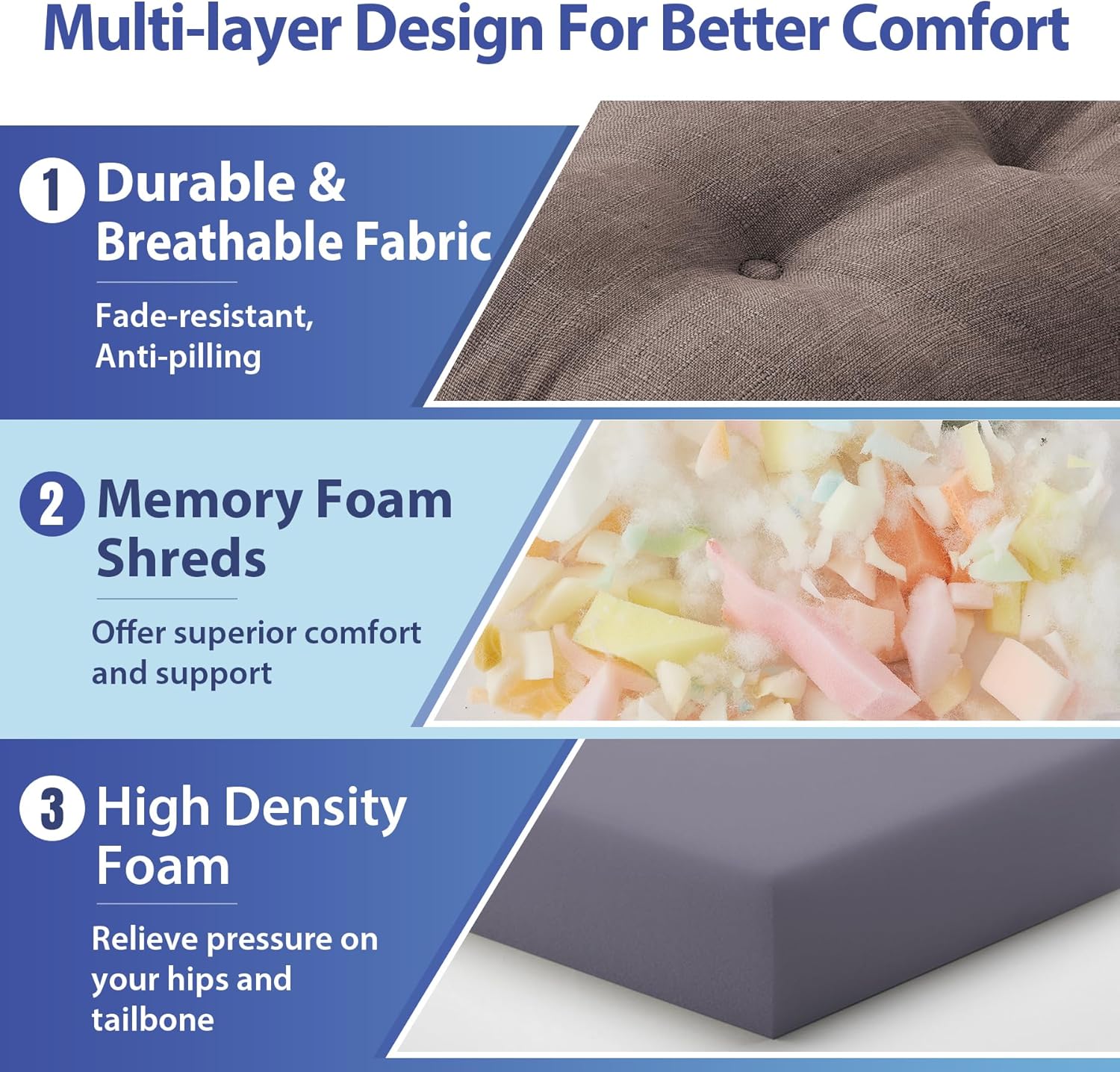 - 【Height-Adjustable Design】: This 3.5" dual-layer cushion combines a firm base foam with adaptive shredded memory foam. Remove the base to reduce height by 1.5" and repurpose it as a lumbar support. Achieve personalized comfort with two ergonomic configurations for versatile seating support.