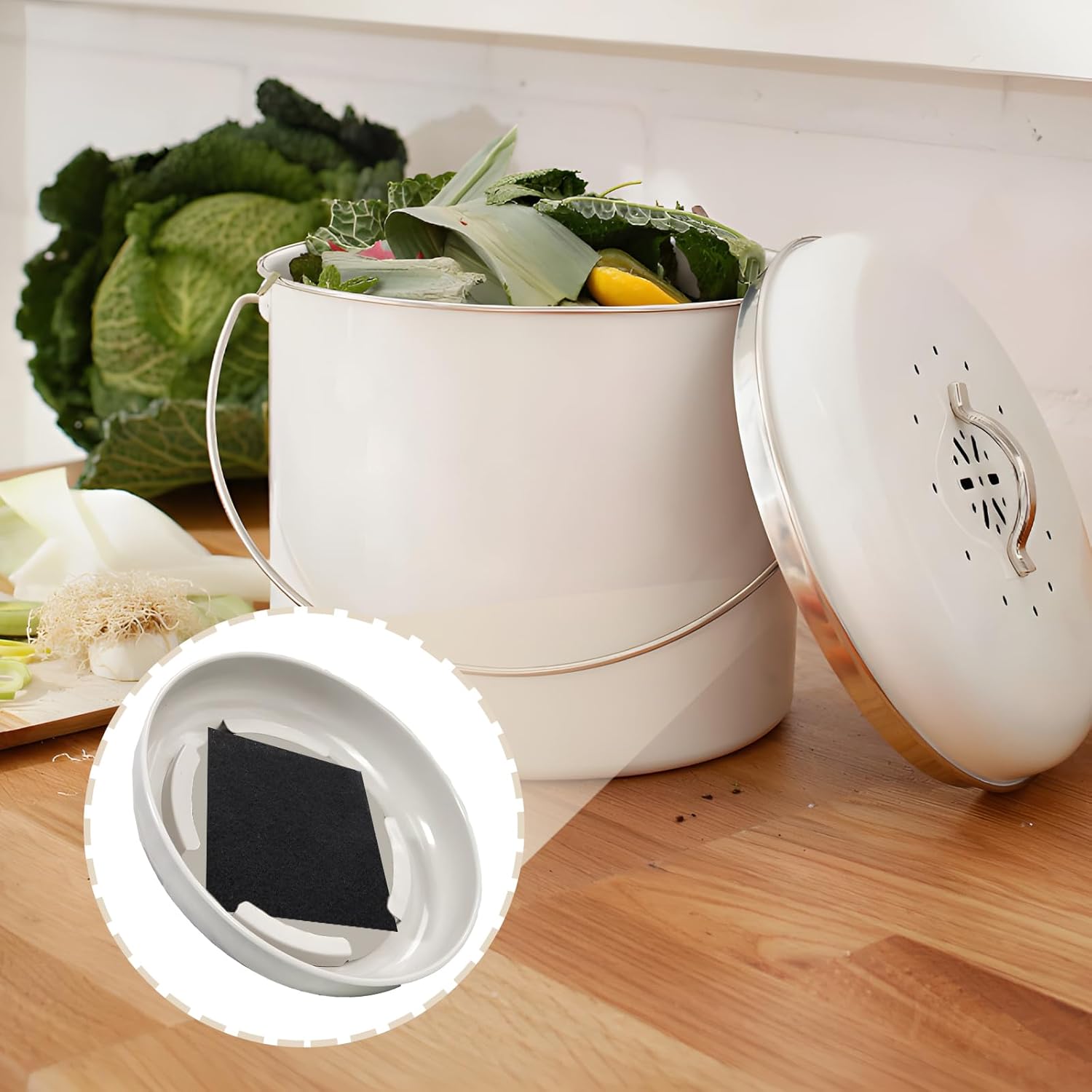 - Preferred Material: The charcoal filters for kitchen is made of activated carbon, which can effectively absorb the smells of the compost bin and prevent food smells from escaping from the compost bin