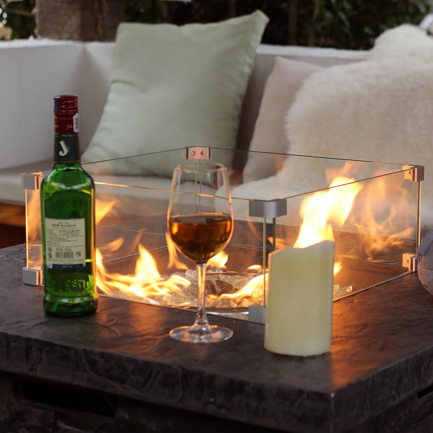 - π₯ Glass Wind Guard: This square fire pit table comes with a matching glass guard to protect you from fire damage and increases aesthetics. This is made of tempered glass so you can rest assured of the quality and arrange this piece however you please and your set will always look classy.