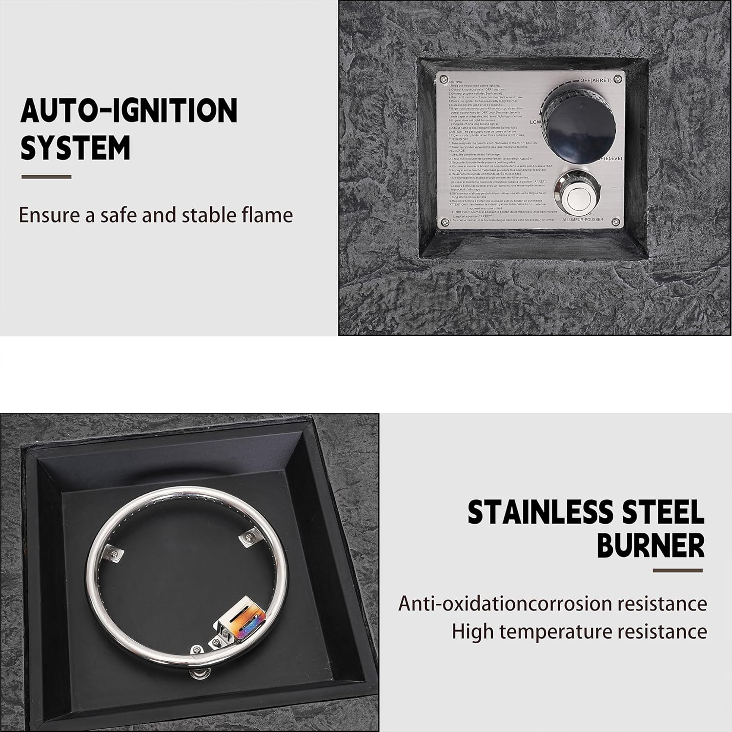 - π₯ Lightweight Concrete: This outdoor fire table set is constructed of lightweight slate and features a modern imitate the texture of stone. This provides a highly durable structure that can hold a substantial amount of weight.