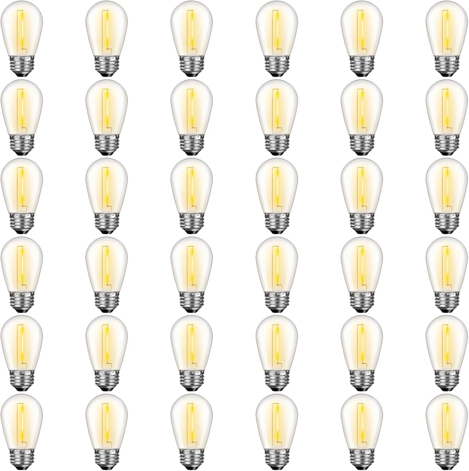 36 Pack S14 LED Bulbs for Outdoor String Lights, Shatterproof Replacement Edison Bulbs for Patio String Lights Outdoor Waterproof, Warm White 2200K, Dimmable, E26 Standard Base