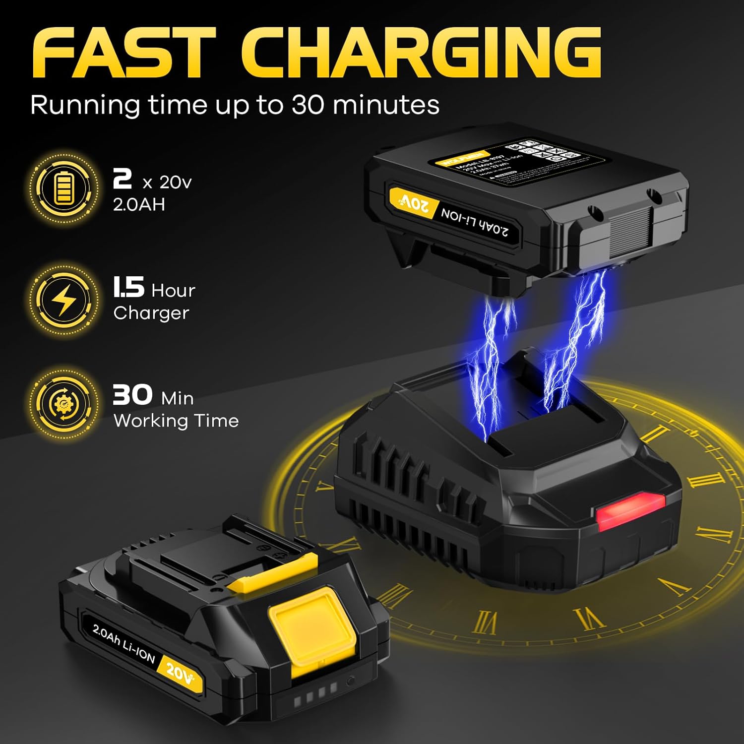 - Powerful Motor: WOLFMEN leaf blower adopts advanced axial flow turbofan, up to 450 CFM and 150 MPH, effectively improving air volume and wind power. It is equipped with a charger and 2 x 20v 2.0 Ah batteries, which can be used alternately. Each battery can work for up to 30 minutes (low speed)