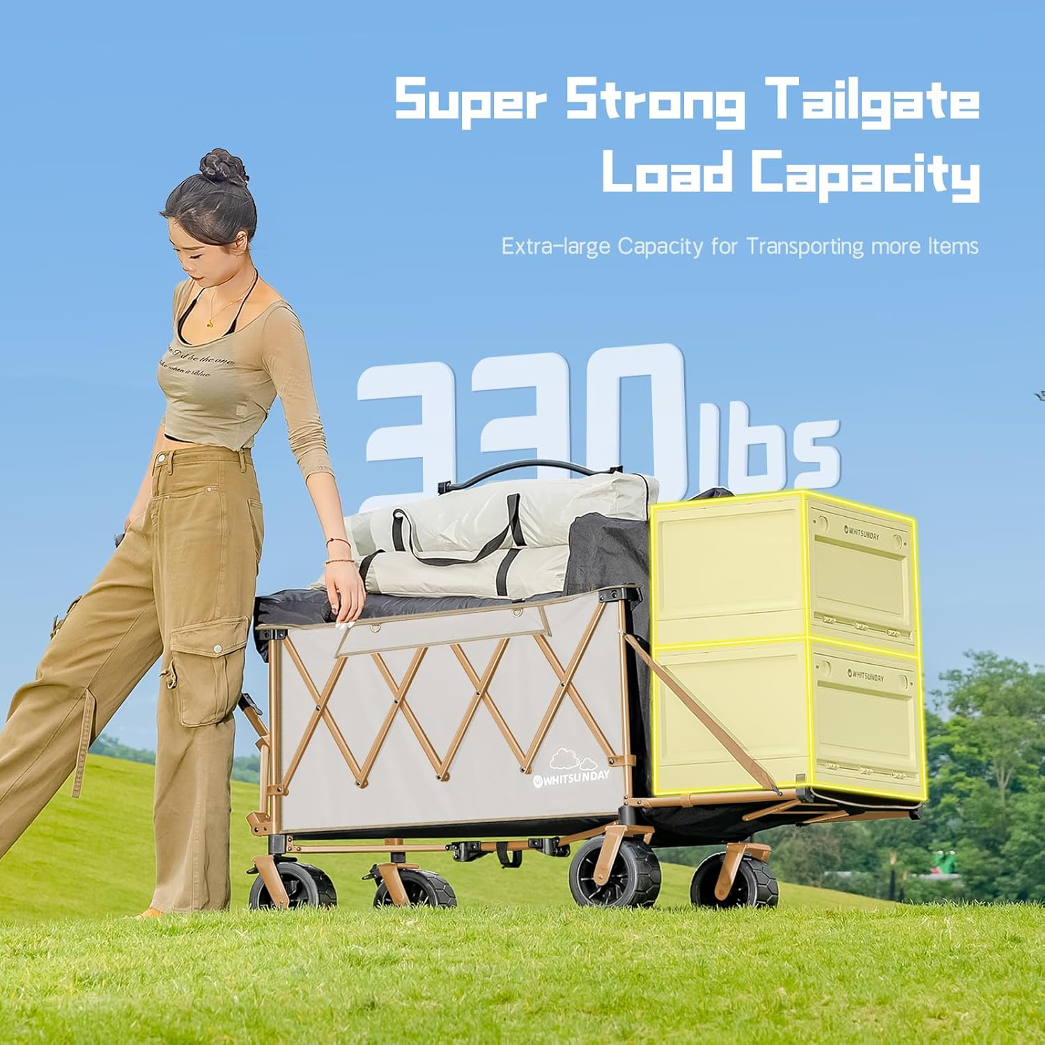 Whitsunday Collapsible Folding Wagon with Table, Heavy Duty Utility Beach Wagons with Opened Tailgate and All-Terrain Wheels for Camping,Garden,Sports (Max Beige)