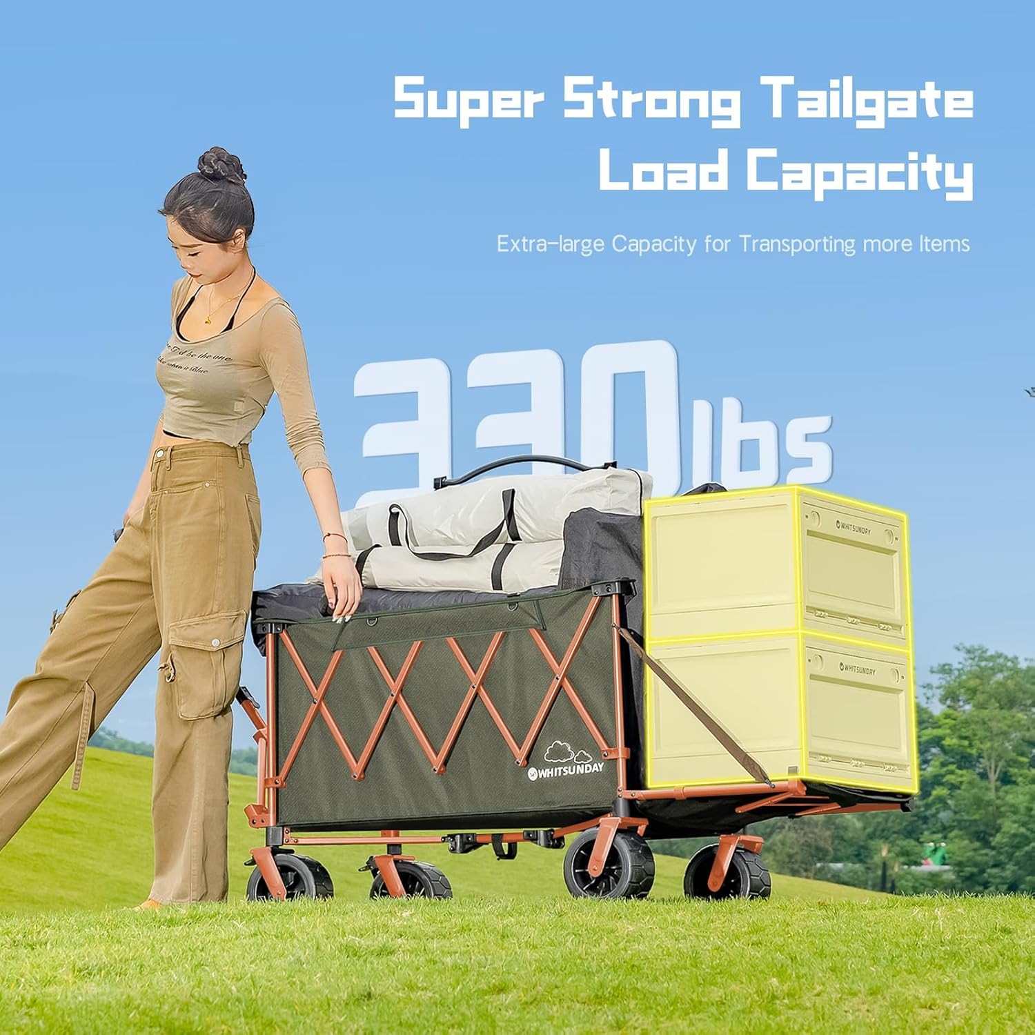 - 【Wagon with Tailgate】: This large-capacity wagon has a well-designed openable tailgate. Compared with traditional station wagons, our extended station wagons can meet various loading needs such as camping tables and camping chairs, and are more convenient to use.