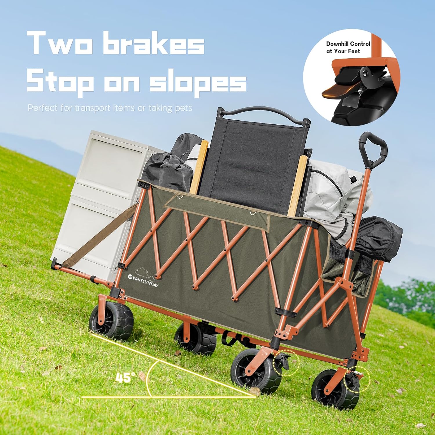 - 【Adjustable Handle】 Whitsunday wagon cart has adjustable handle, With a 180° rotation design, it is suitable for pulling the wagon in different directions. The spring-loaded handle can be adjusted in height, accommodating individuals of varying heights and making it easy to pull with minimal effort.