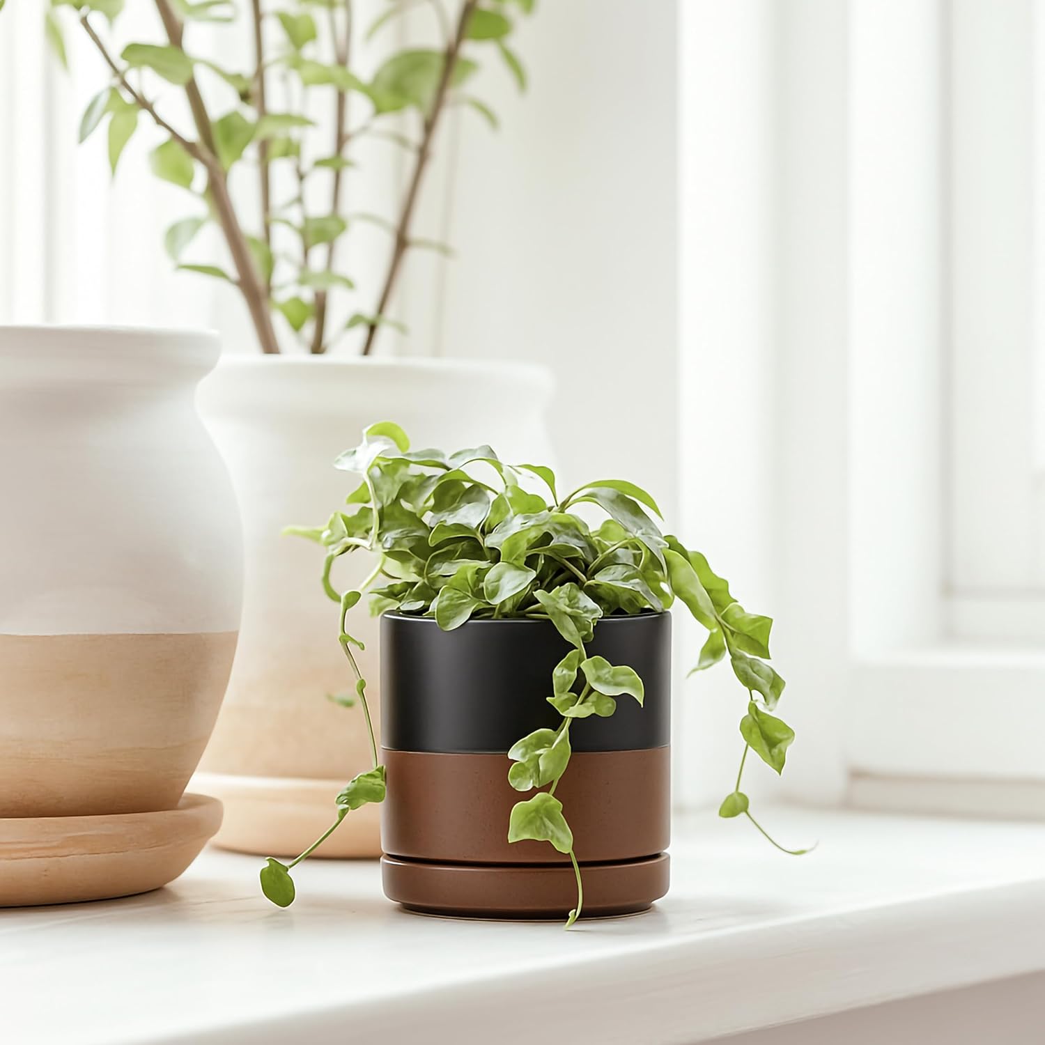 - Showcase your small houseplants or botanicals with set of 4 planter pots with saucers.