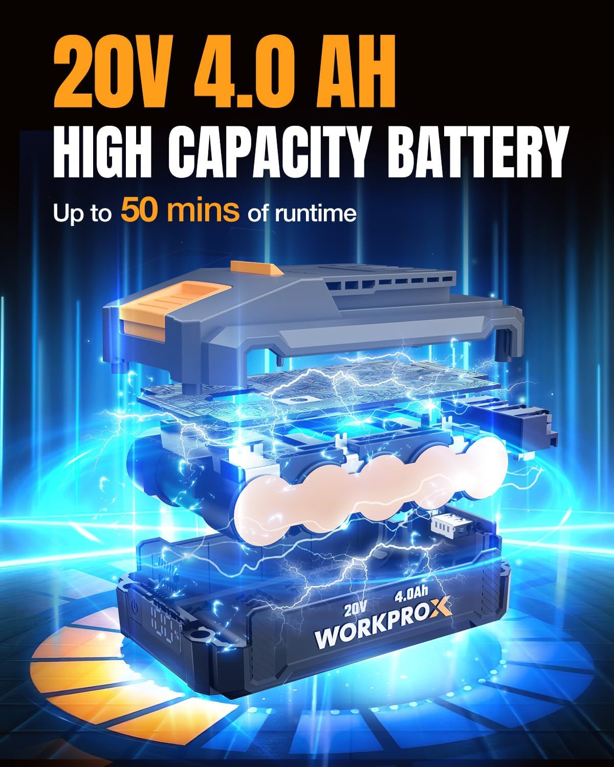 - 20V 4.0Ah Battery & Fast Charging: Powered by a 4000mAh battery, this electric chainsaw provides up to 50 minutes of operation and charges in just 1 hour. An LED power display helps track battery status, and it doubles as a portable power bank for emergencies