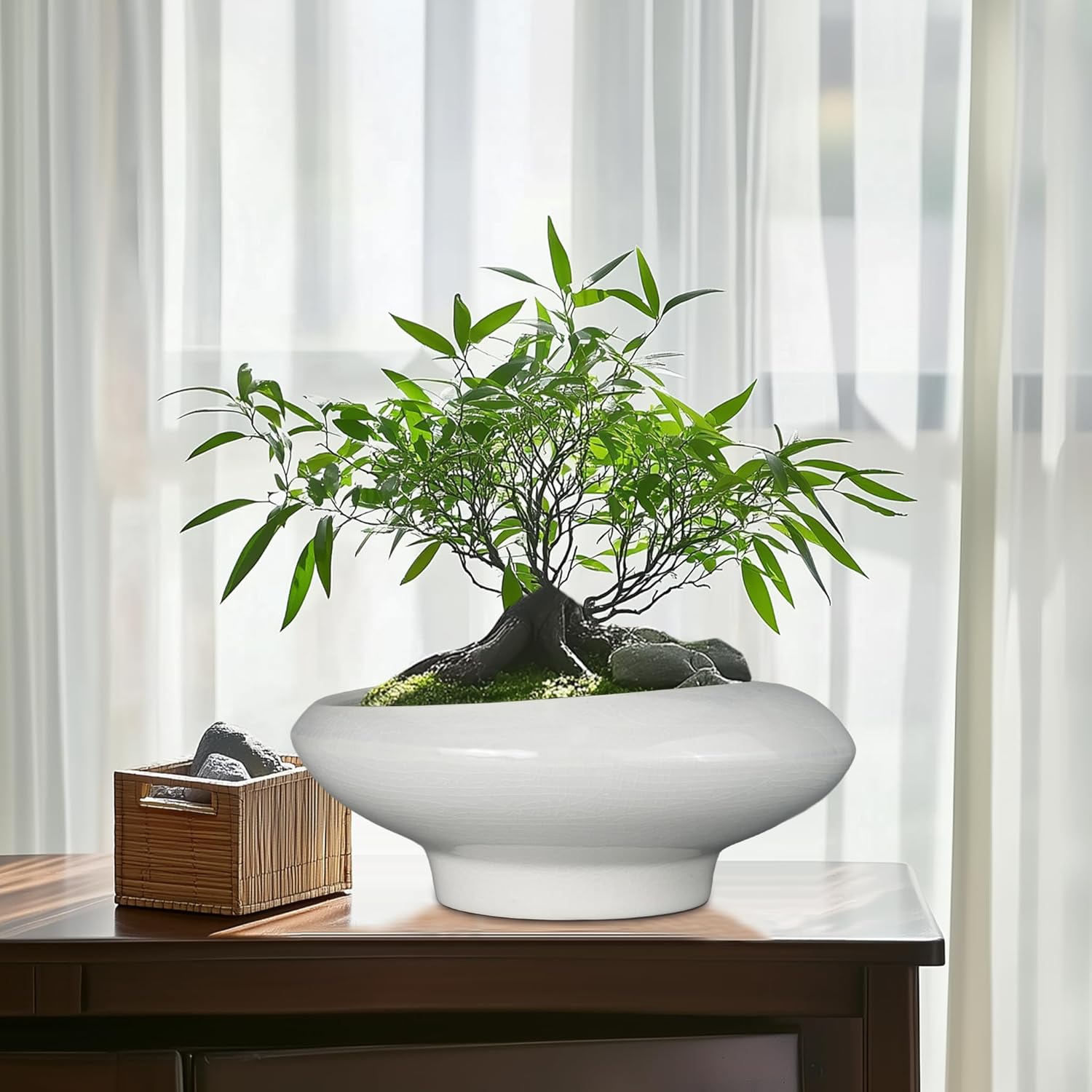 - Elegant Aesthetic: Featuring a beautiful ice crackle glaze finish, this bonsai tree pot combines practicality with style, for table, windowsill, office, shelf, patio, deck, balcony, zen garden, any indoor or outdoor space