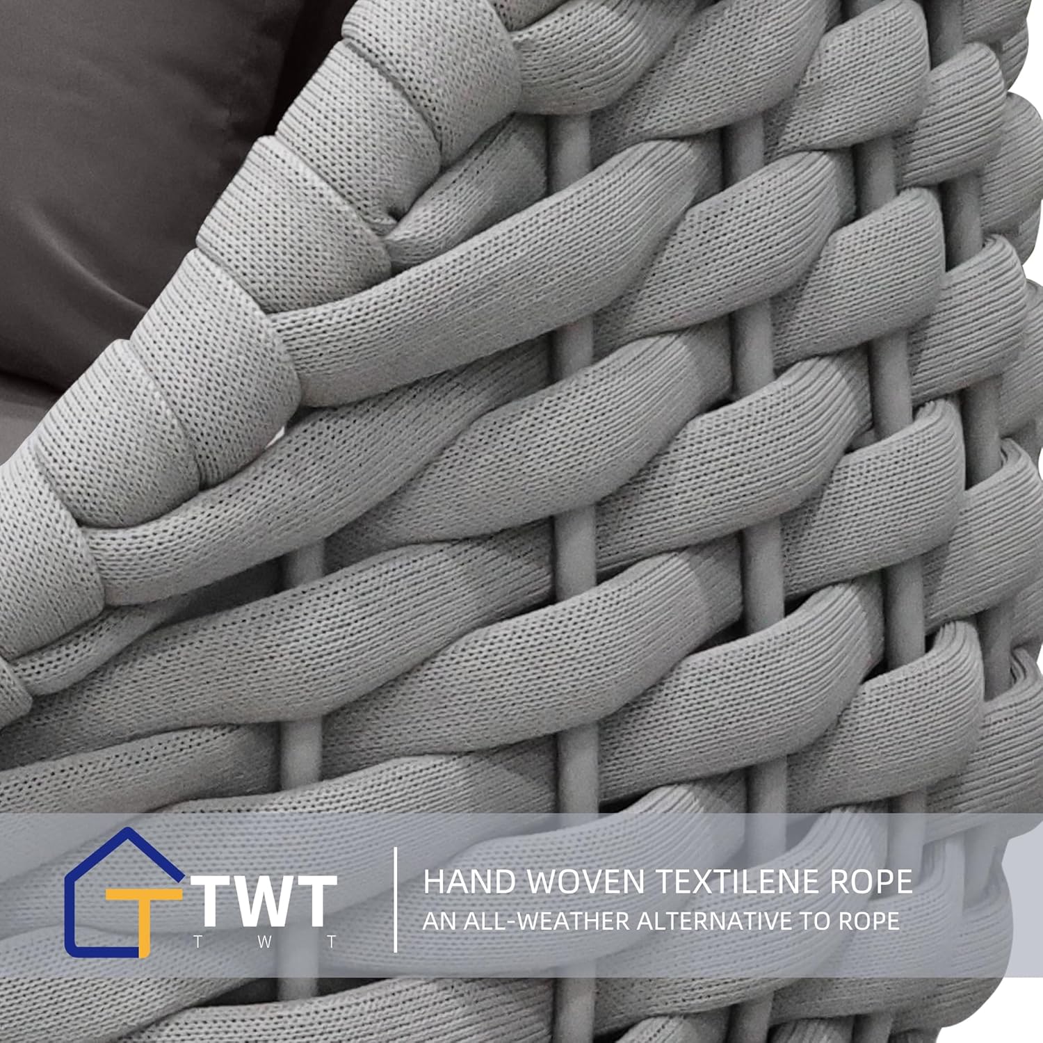 - Sturdy & Durable - Quick drying woven rope outdoor furniture with high quality aluminum alloy,no rust,no deformation,hand woven textilene rope are strong enough to withstand all weather variations.Outdoor patio furniture set cushions balance well with sturdy frame.