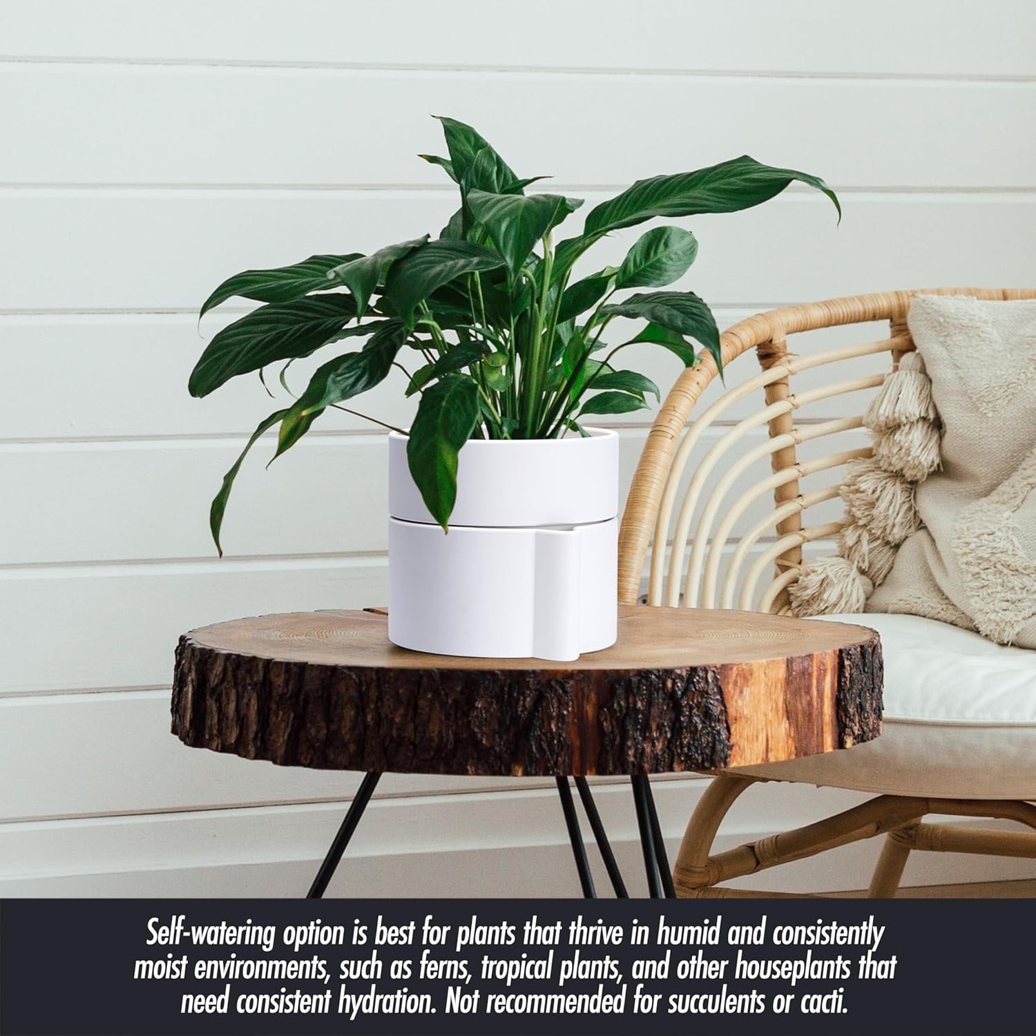 Phoenix Vine 6.5 Inch Self-Watering Planter Pot with Terracotta Insert, Deep Water Reservoir, and Ceramic-Alike BPA-Free Plastic Pot for Plant, Modern Planter for Houseplants, White, 53-A-S-1